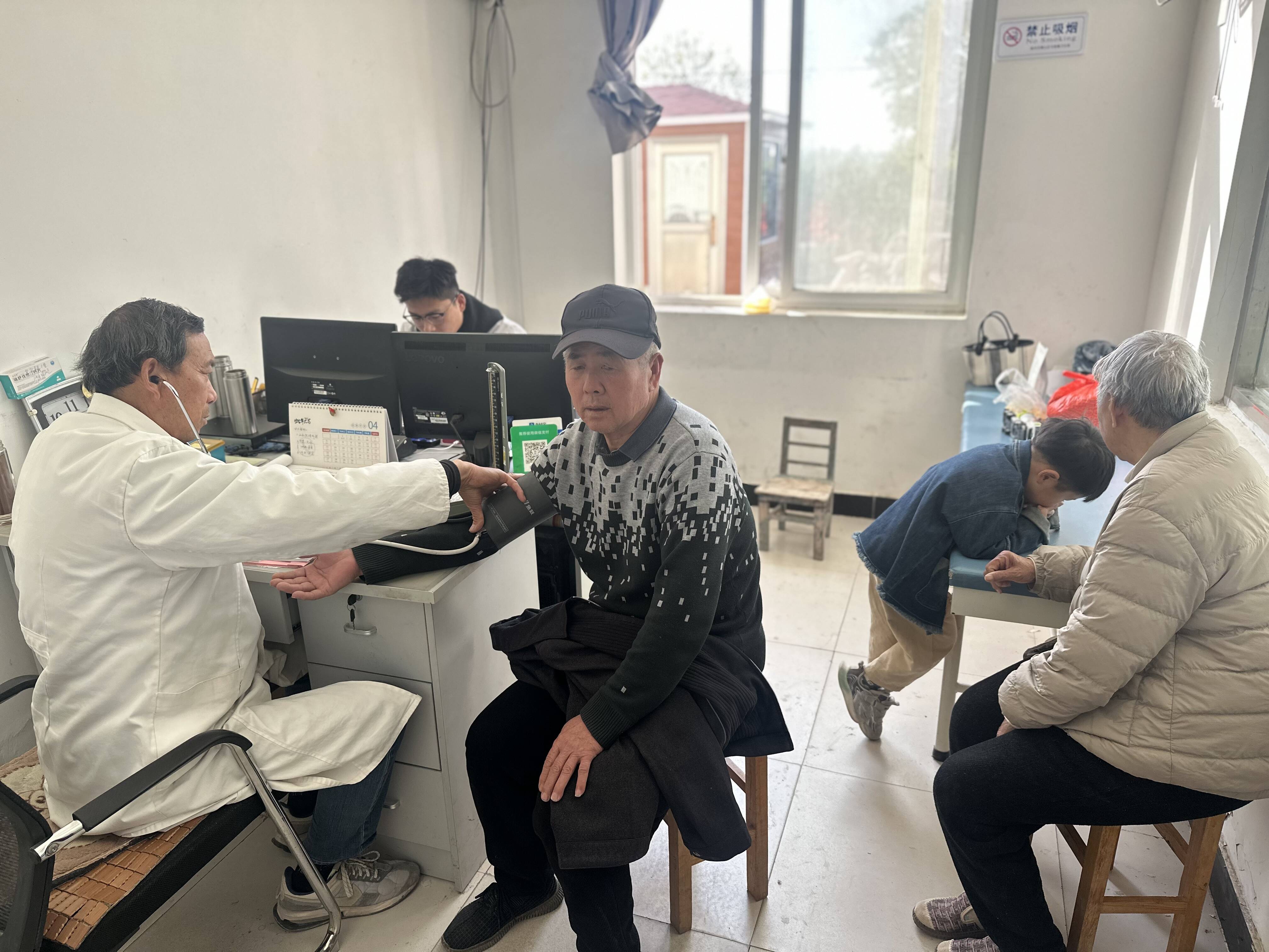 “大爷,您最近身体感觉咋样?平时有没有哪儿不舒服呀?”“还行,就是有时候觉得腿有点酸。”医务人员一边亲切地询问老人们的身体状况和既往病史,一边熟练而专注地为他们进行各项健康检测,每一个动作、每一句问候都包含着对老人的关爱。