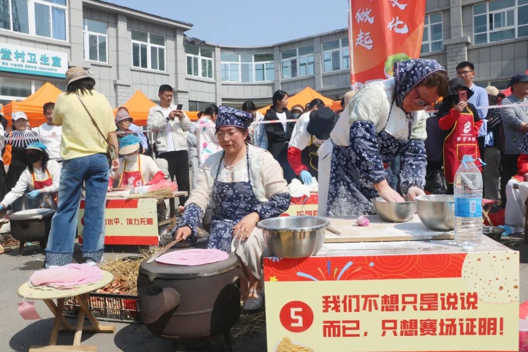 活动现场,各组参赛选手摩拳擦掌,准备一展身手。比赛开始前,主持人详细介绍了烙馍文化的悠久历史和梁堂古村烙馍的独特魅力,让现场观众对这项传统美食有了更深的了解。随着领导致辞的结束,比赛在鸣笛声中正式拉开帷幕。