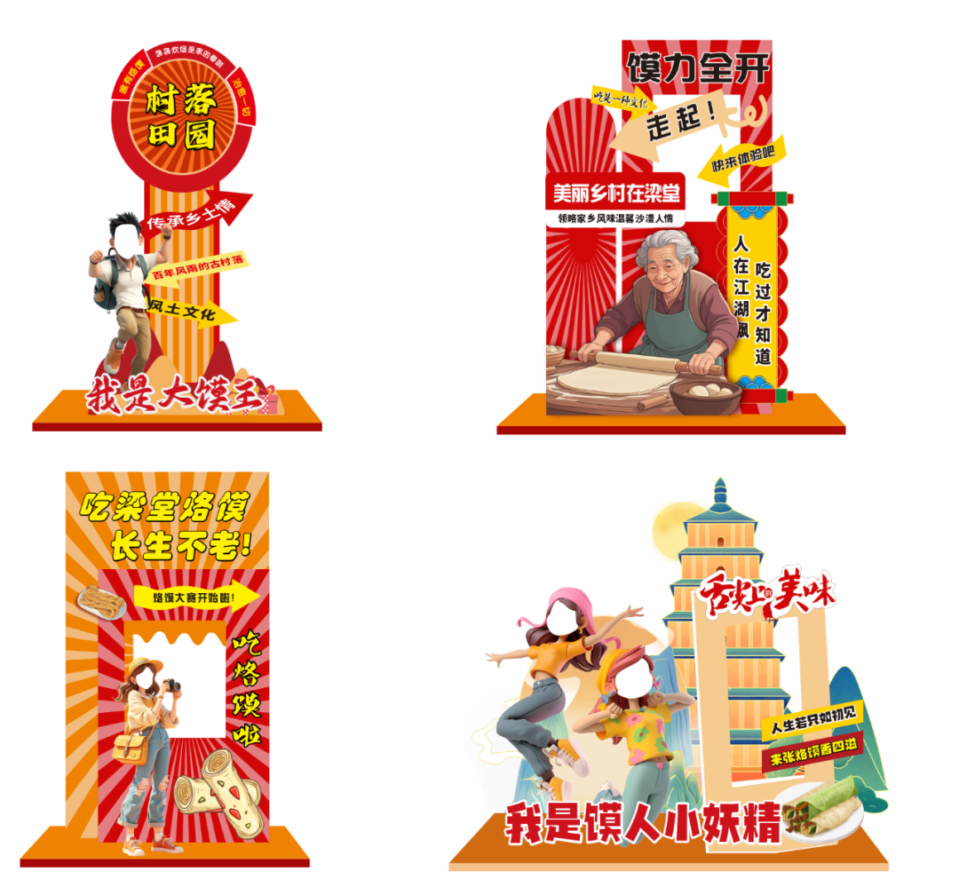 “我是大馍王”、“馍力全开”、“吃烙馍啦”、“我是馍人小妖精”把头伸进超萌造型板,表情越夸张越出片!