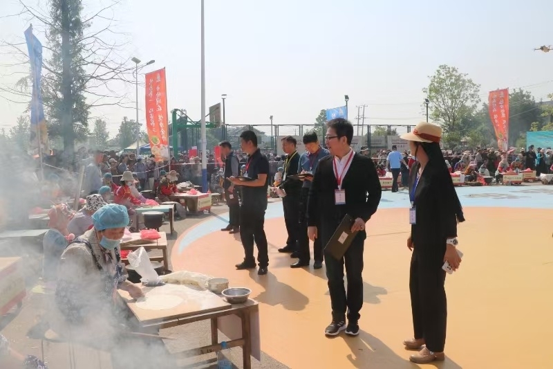 50余分钟后,选手们面前摆满烙好的烙馍。到了紧张的评分环节,评委们从“数、色、香、味、形”多维度考量,公平公正地为每组烙馍打分,现场评选出一、二、三等奖。
