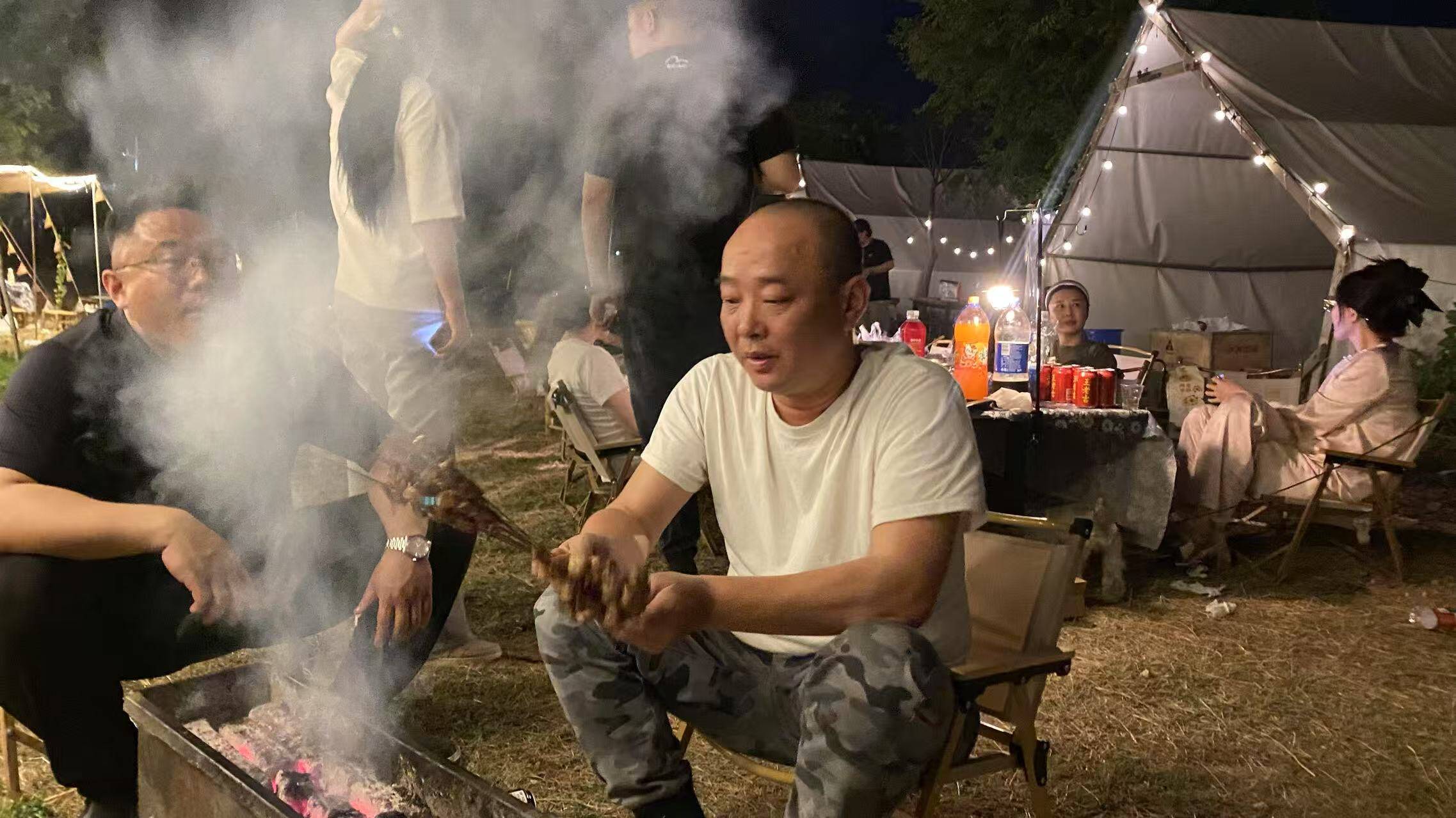 草帽山桃园基地负责人薛振说,“五一”期间景点游客爆满,好多人又不愿意在家里,所以来山间野营度假成了市区部分年轻人的向往。基地在原基础上添置了烧烤、茶具、音响、电影等设备,以备游客租赁。