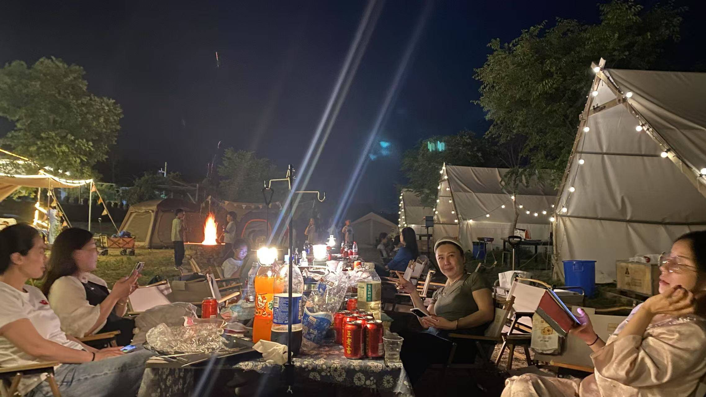 黄昏时分,坐在草地上,与朋友或家人看一场星光电影,尽情谈天说地;夜幕降临,围着篝火听一场草地上的音乐会,偶尔还能听到鸡鸭鹅和山林中鸟儿和鸣;躺进星空帐篷,一起观察天上的星星,感受露营的趣味,和朋友一起烧烤畅饮……都是满满的惬意!