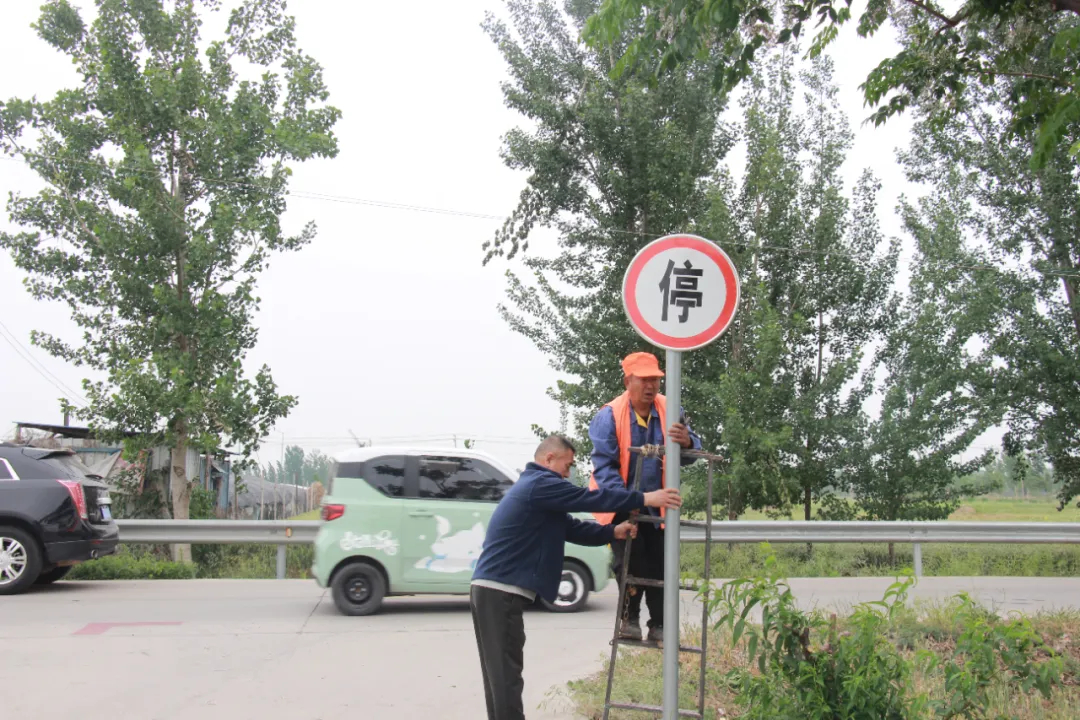 行动开展前,农路办了解到程庄村部分道路存在标识牌缺失的情况,村民反映出行时缺乏明确指引,针对这一问题,农路办提前对村内道路进行了详细摸排,精准掌握需求。行动当日,工作人员在村内主干道规范安装路牌,这些崭新的路牌不仅为往来车辆和行人提供了清晰的出行指引,还能提醒车辆注意行车安全,及时消除了潜在的道路安全隐患。
