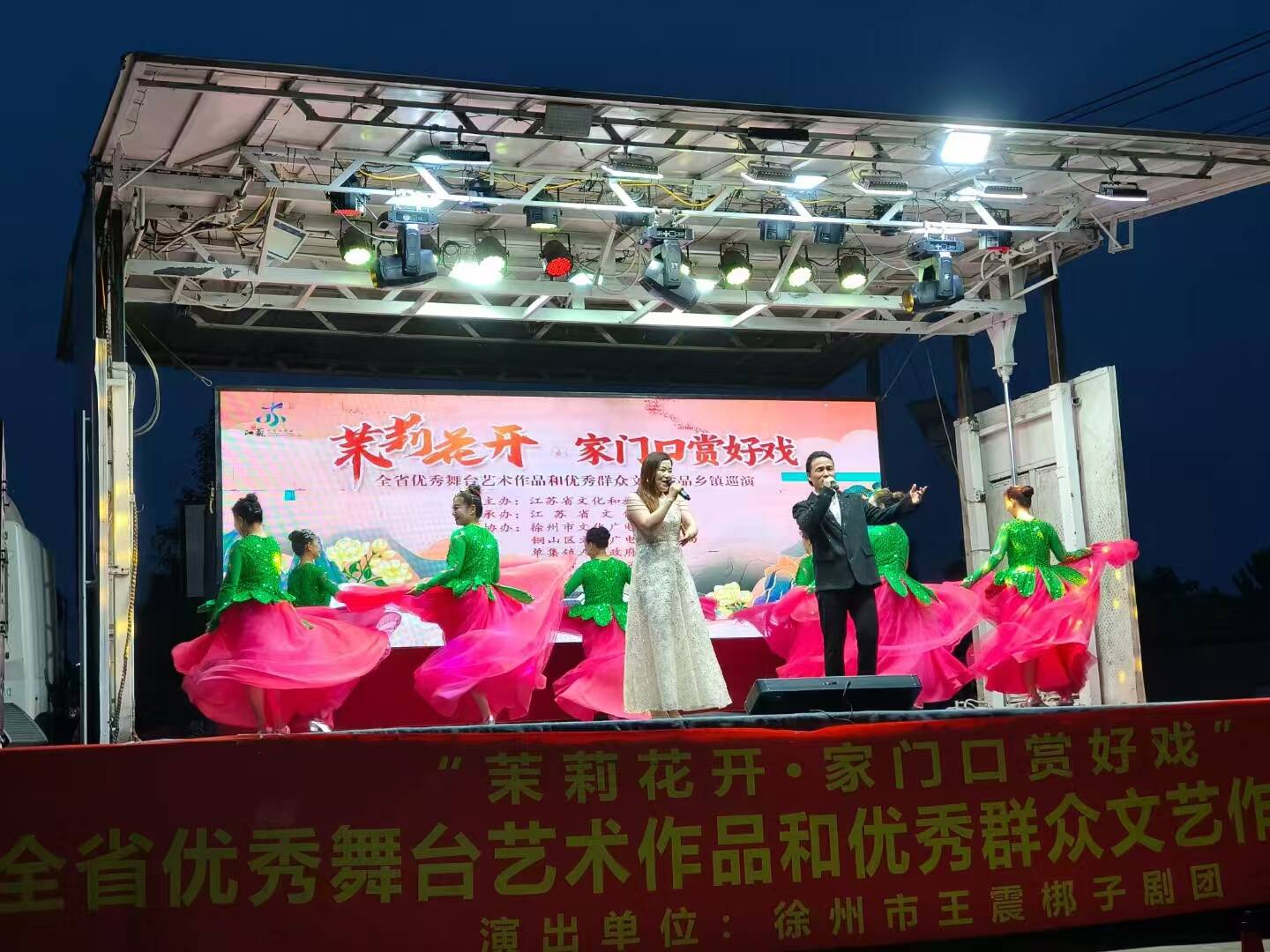 本次活动由江苏省文化和旅游厅主办,江苏省文化馆承办,徐州市文化广电与旅游局、铜山区文体广电和旅游局、单集镇人民政府共同承办,省级专业文艺院团——徐州市王震梆子剧团带来本场高水平演出,涵盖歌舞、戏剧、杂技等多种艺术形式,惠及周边4村,并有现场直播,形成线上线下联动的文化传播效应。
