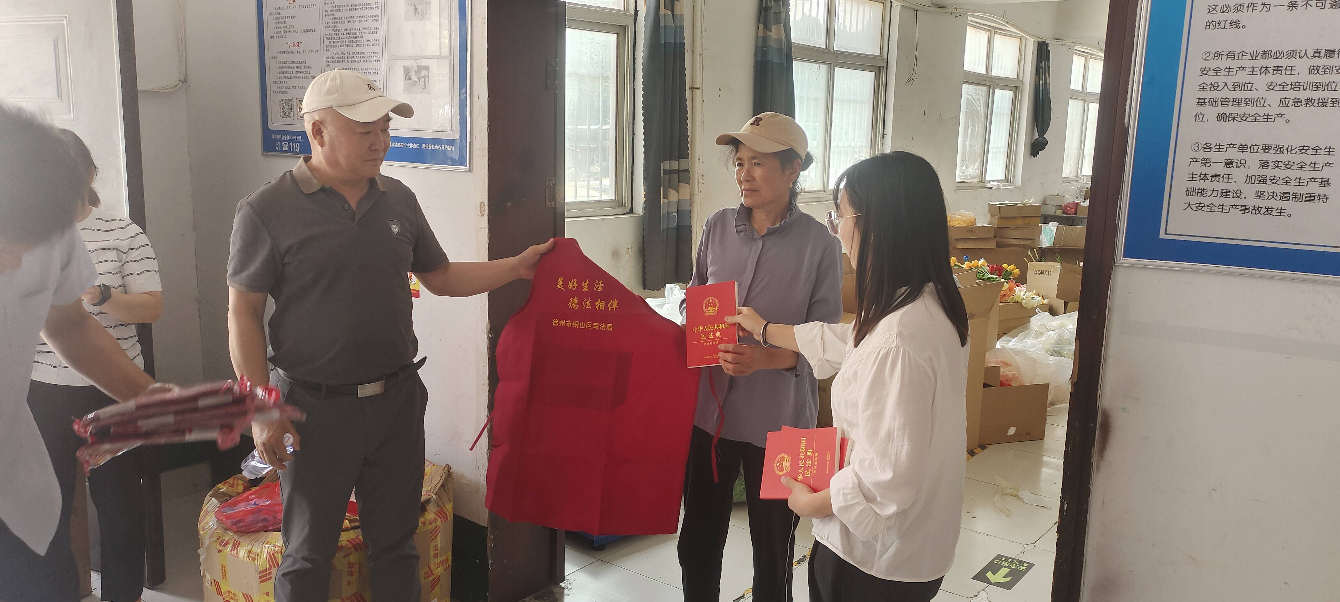 在铜山区汉王镇徐州方之舟工艺品有限公司的车间里,工人正忙着将一件件玩具进行加工、包装,打包后的各种玩具产品将销往全国各省市,并远销欧、美、东南亚等国家和地区。在六一儿童节到来之际,铜山区司法局带领由基层法律服务工作者组成的“法治体检”服务团走进这家“童心工厂”,为企业进行专项法治体检。