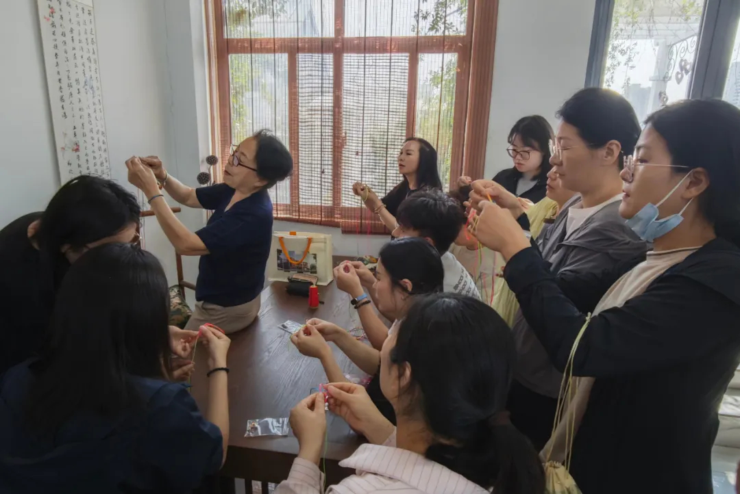 “五彩绳在端午节有祈福纳吉的美好寓意。”编织区的姚萍老师一边示范一边讲解,在老师的指导下,大家将红、黄、蓝等彩色丝线巧妙编织,再配上精致的挂件,一条条寓意吉祥的五彩绳手链很快成型。此外,还有非遗文化麻绳编制体验,通过庄雪梅老师授课,参与者们不仅学会了编织技巧,还对非遗文化有了更深刻的理解,增强了对传统手工艺的热爱与尊重。