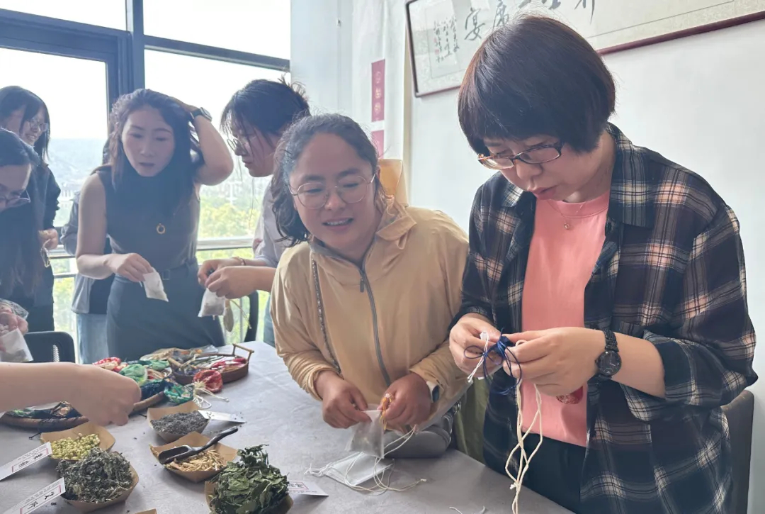 活动现场设置了三大体验区,每个区域都配有专业老师现场指导。在香包制作区,姚冰阳老师讲解了香包的药用价值和文化内涵,参与者们兴致勃勃地挑选艾草、丁香等中草药,将其装入精美的布料中,制作出一个个独具特色的端午香包。