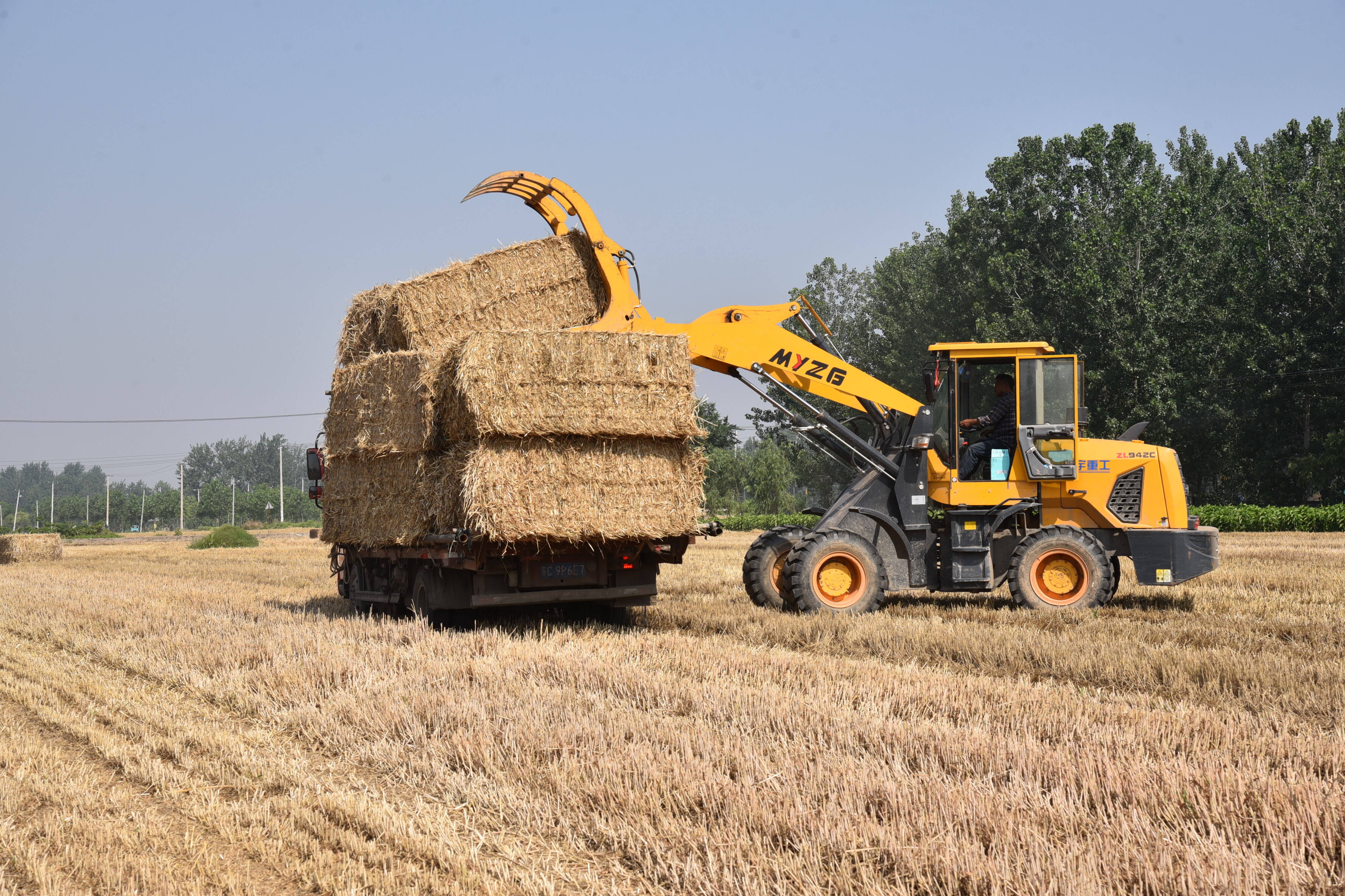 近日,铜山区房村镇一处麦田里,村民将打捆的小麦秸秆装车销售。近年来,该镇大力推广农作物收割打捆一体化作业,实施秸秆离田,回收利用举措,即有利于环保,又增加了村民收入。
