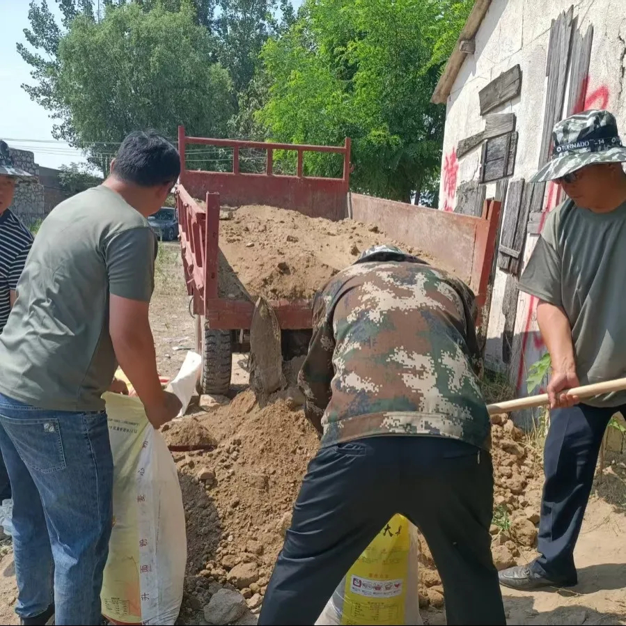 与此同时,周边群众得知消息后也自发赶来,加入这场“抗旱保种”攻坚战。村民尚玉建率先驾驶自家挖掘机抵达现场,运来一车泥土,在他的带动下,村民们纷纷挽起袖子,接力搬运泥土装袋,齐心协力在河道旁垒砌起一道坚固的临时堤坝,有效阻隔了倒灌水流。