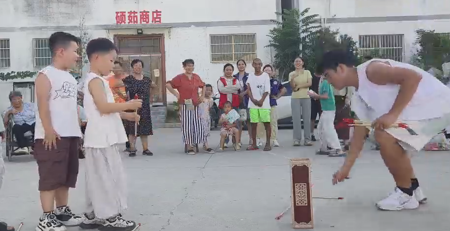 实践团在田巷村文化广场搭建了“流动舞台”,通过情景剧《草鞋》重现本地革命故事,并以红歌联唱《走向复兴》《没有共产党就没有新中国》点燃了村民的家国情怀,此外,舞台剧《薪火》将近代革命故事串联起来,传递信仰的力量。田巷村的孩子们认真聆听,红色火种在互动中悄然播撒。