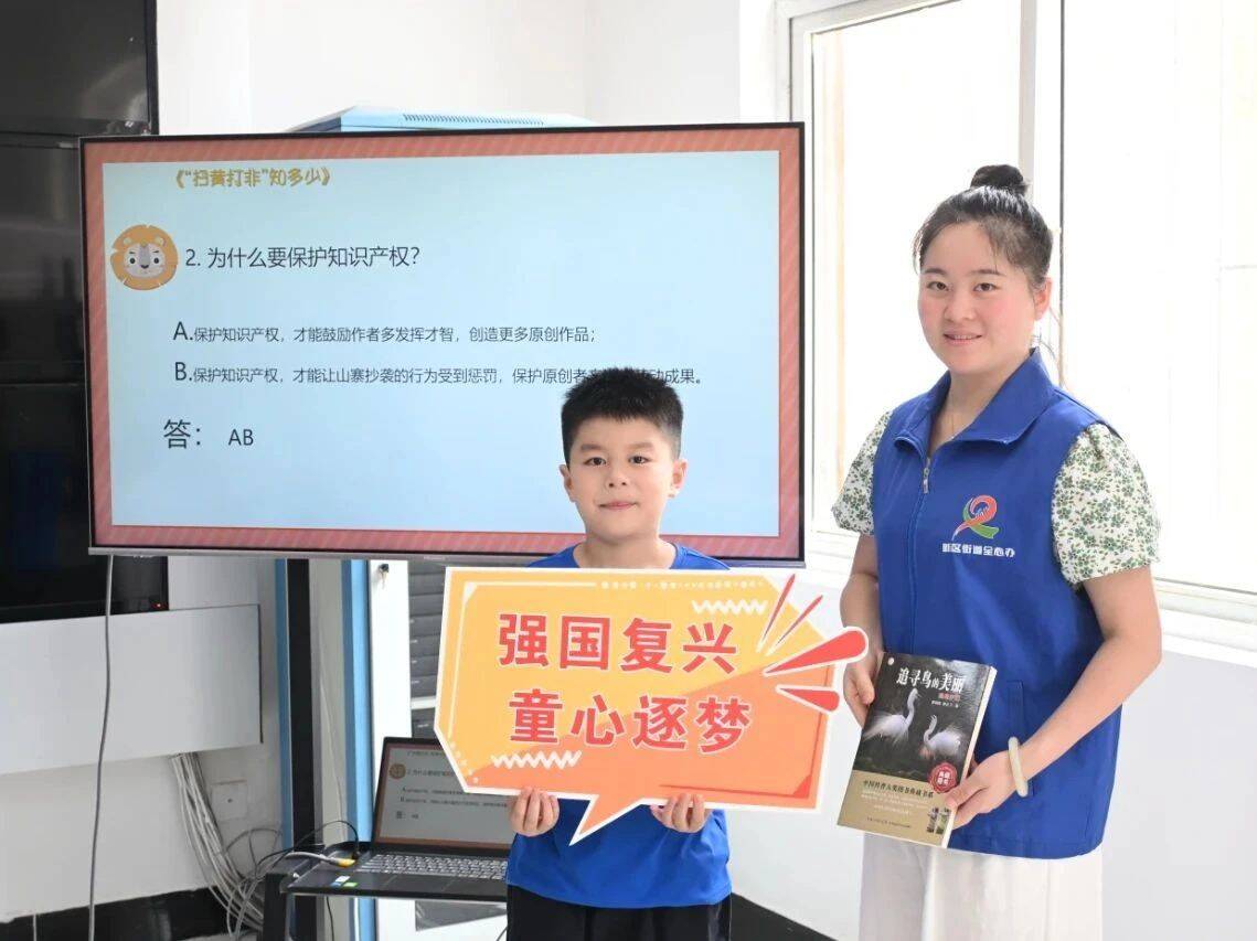 随后,活动迎来了高潮环节“绿书签知识大闯关”问答活动。工作人员精心设计了一系列与“扫黄打非”、版权保护、网络安全、健康阅读相关的趣味题目,内容涵盖“如何辨别正版书和盗版书?”、“发现不良信息该怎么办?”、“哪些行为属于传播非法出版物?”等贴近孩子们生活实际的知识点。问题一出,现场气氛瞬间热烈起来。孩子们争先恐后地举手,踊跃参与答题,自信满满地分享着自己的见解。问答环节不仅检验了孩子们的学习成果,更在轻松愉快的氛围中加深了他们对健康文化重要性的理解。