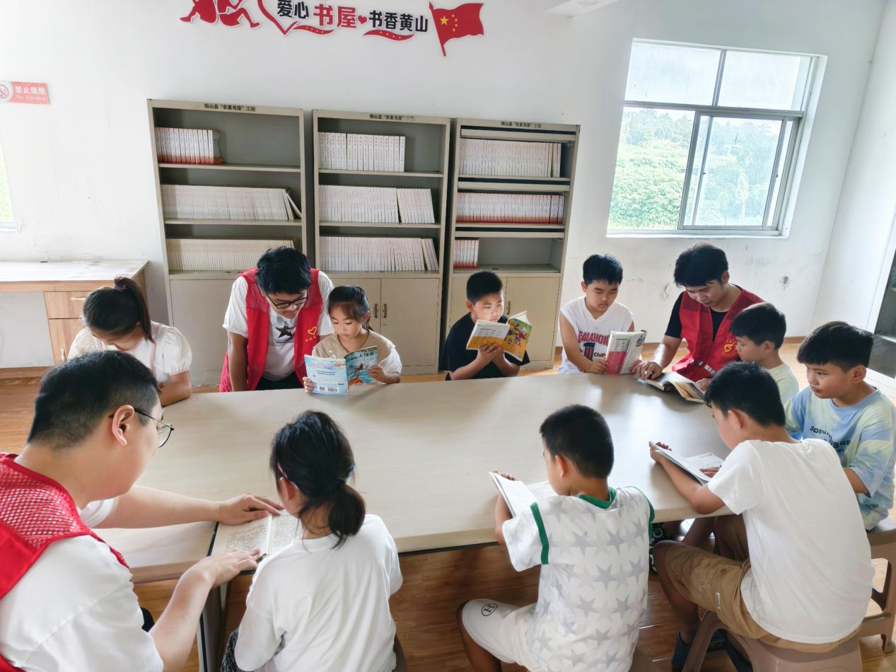 此外,活动还精心策划了特色读书活动。村内图书室涵盖科普、文学、童话等多个领域,志愿者与孩子们围坐一起,开启沉浸式阅读时光。小朋友们自主挑选心仪的书籍,专注默读、轻声交流书中情节;志愿者则适时引导,鼓励大家分享阅读感悟,在书香浸润中提升思维与表达能力。一位家长感激地说:“孩子暑假在家没人管,整天抱着手机,现在有了这个辅导班,既能学知识、交伙伴,我们也能安心工作了!”