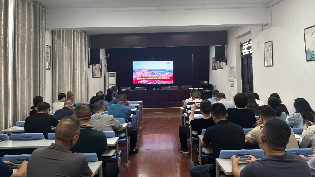 为深入弘扬伟大的抗战精神,激发广大干部群众的爱国热情,凝聚奋勇前行的力量,9月3日上午9时,大彭镇组织全镇党员干部和村民代表集中收看了纪念中国人民抗日战争暨世界反法西斯战争胜利80周年大会的实况直播,引导广大干部群众坚定理想信念,厚植家国情怀,为实现国家富强、人民幸福贡献力量。