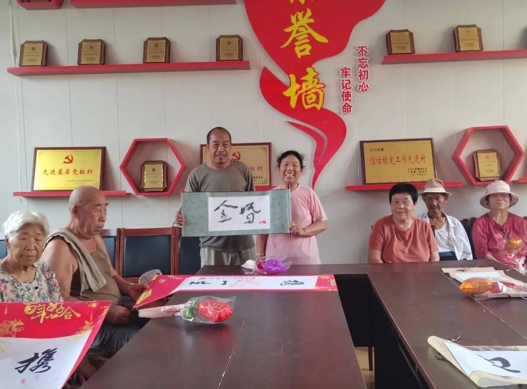 首展当天,棠张镇书法爱好者率先到场交流赏鉴;一位退伍军人现场铺墨即兴创作,与众人研讨书画技艺,引得围观。