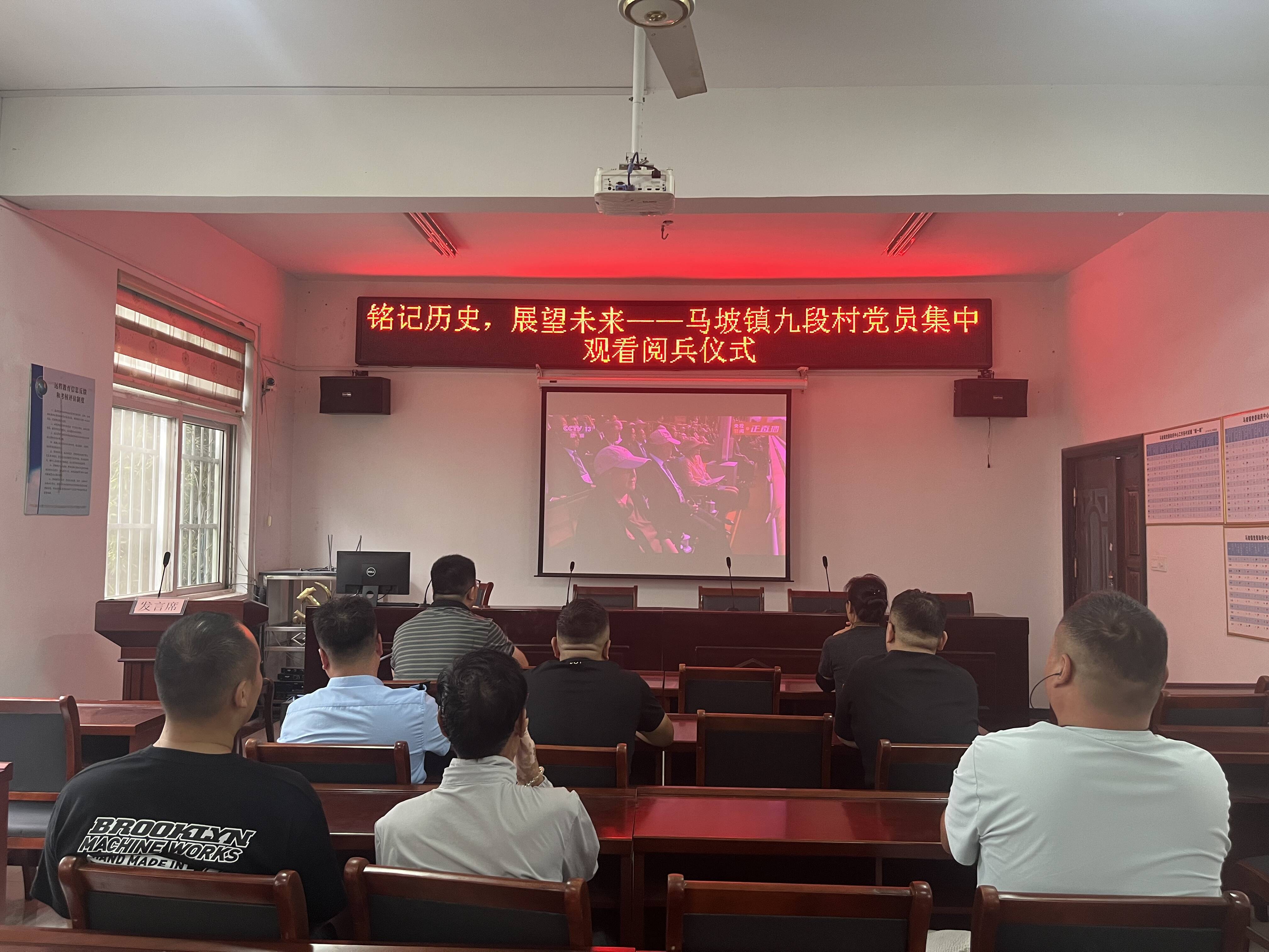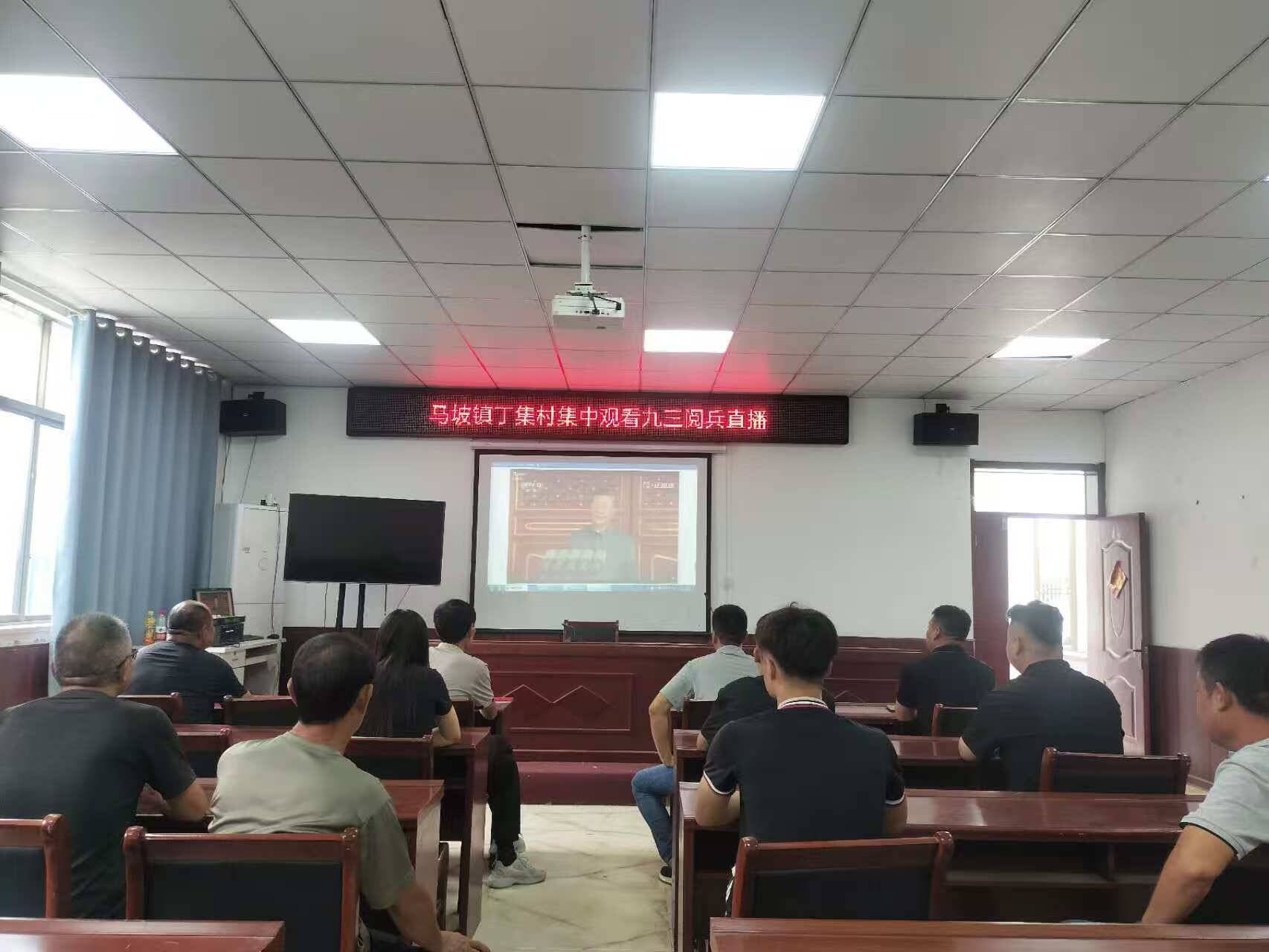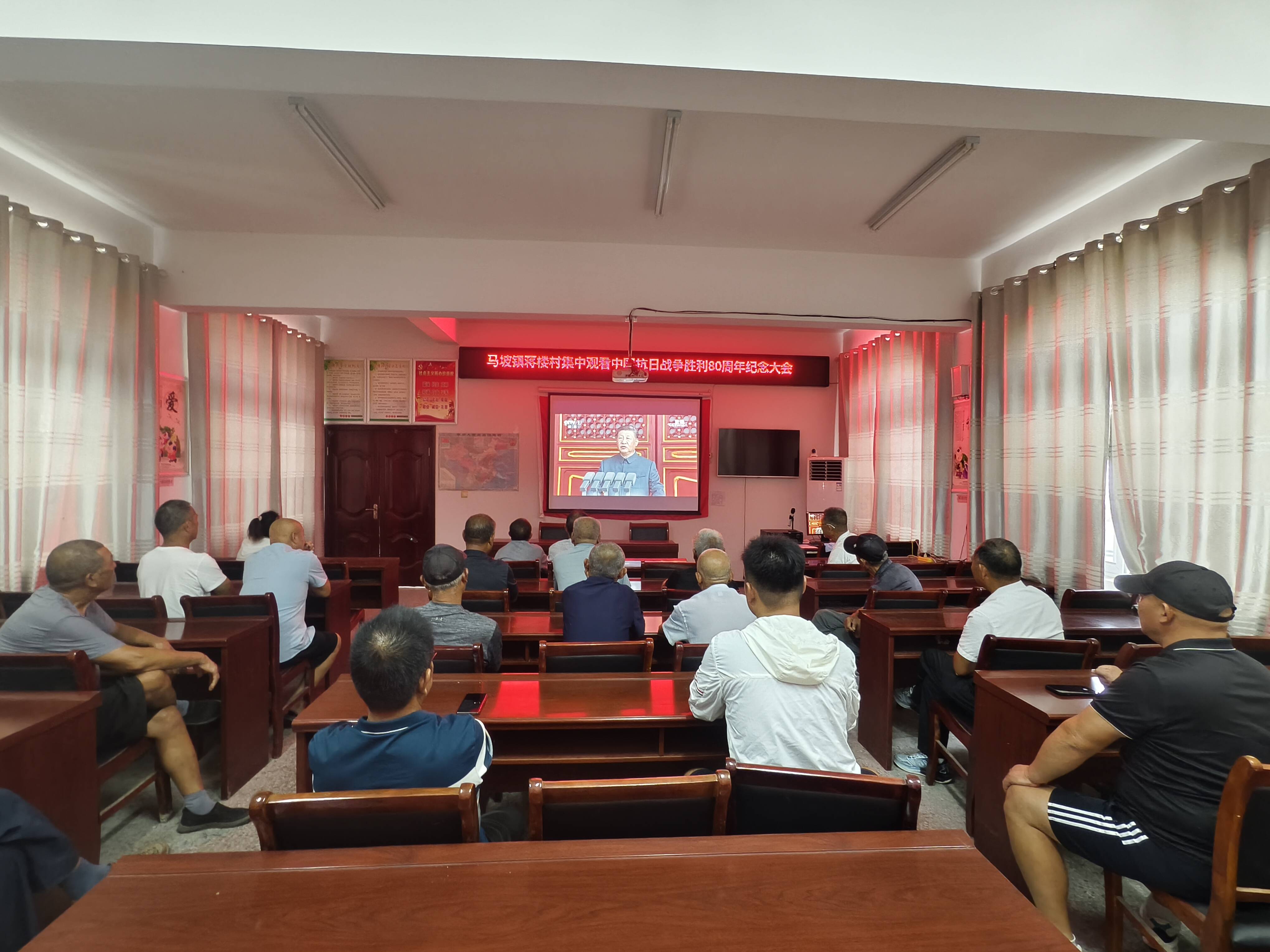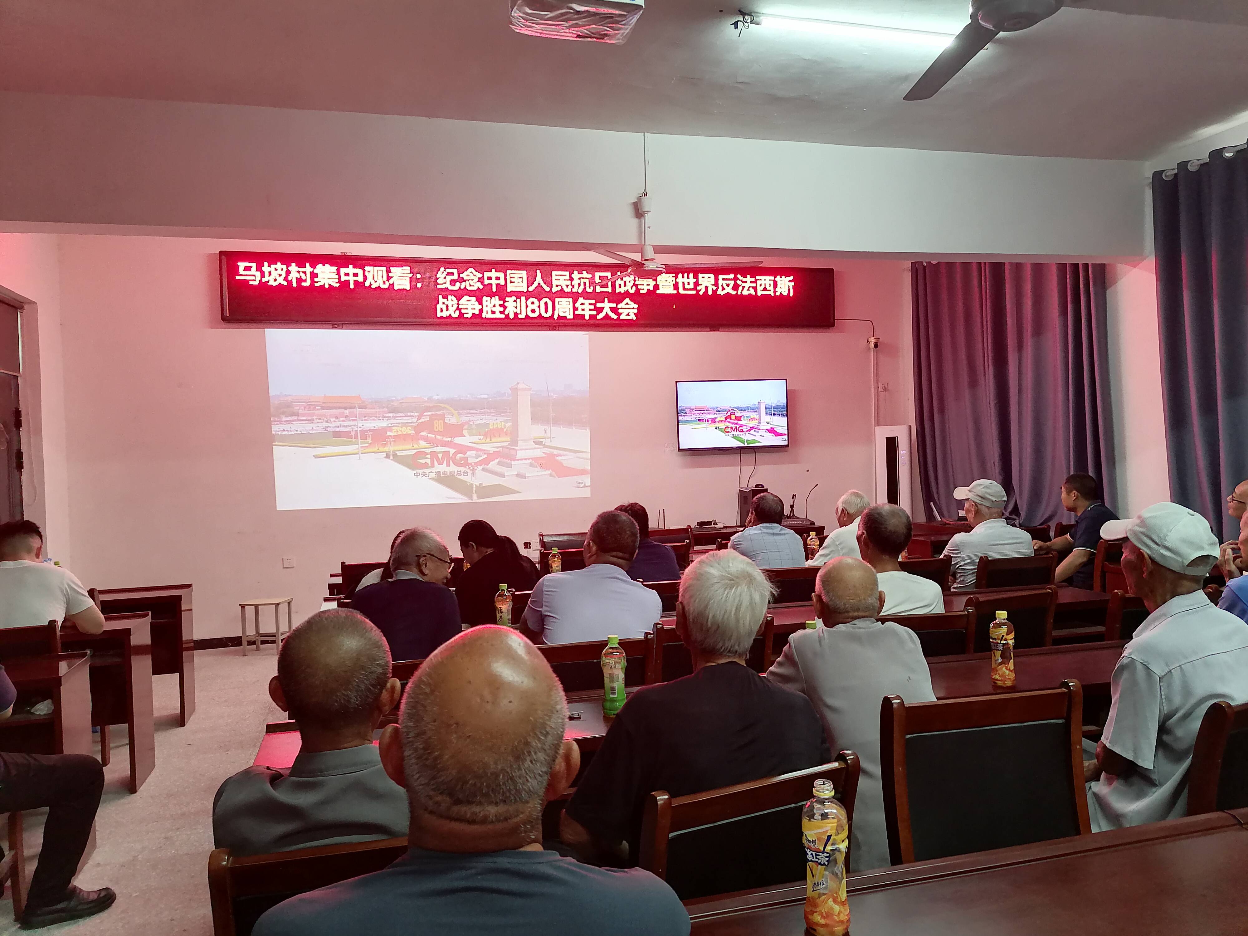 9月3日,纪念中国人民抗日战争暨世界反法西斯战争胜利80周年大会在北京天安门广场隆重举行,中共中央总书记、国家主席、中央军委主席习近平发表重要讲话并检阅受阅部队。马坡镇各村集中观看纪念大会实况直播,共同见证这一庄严时刻。