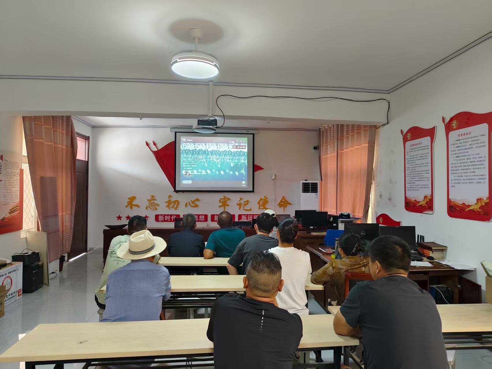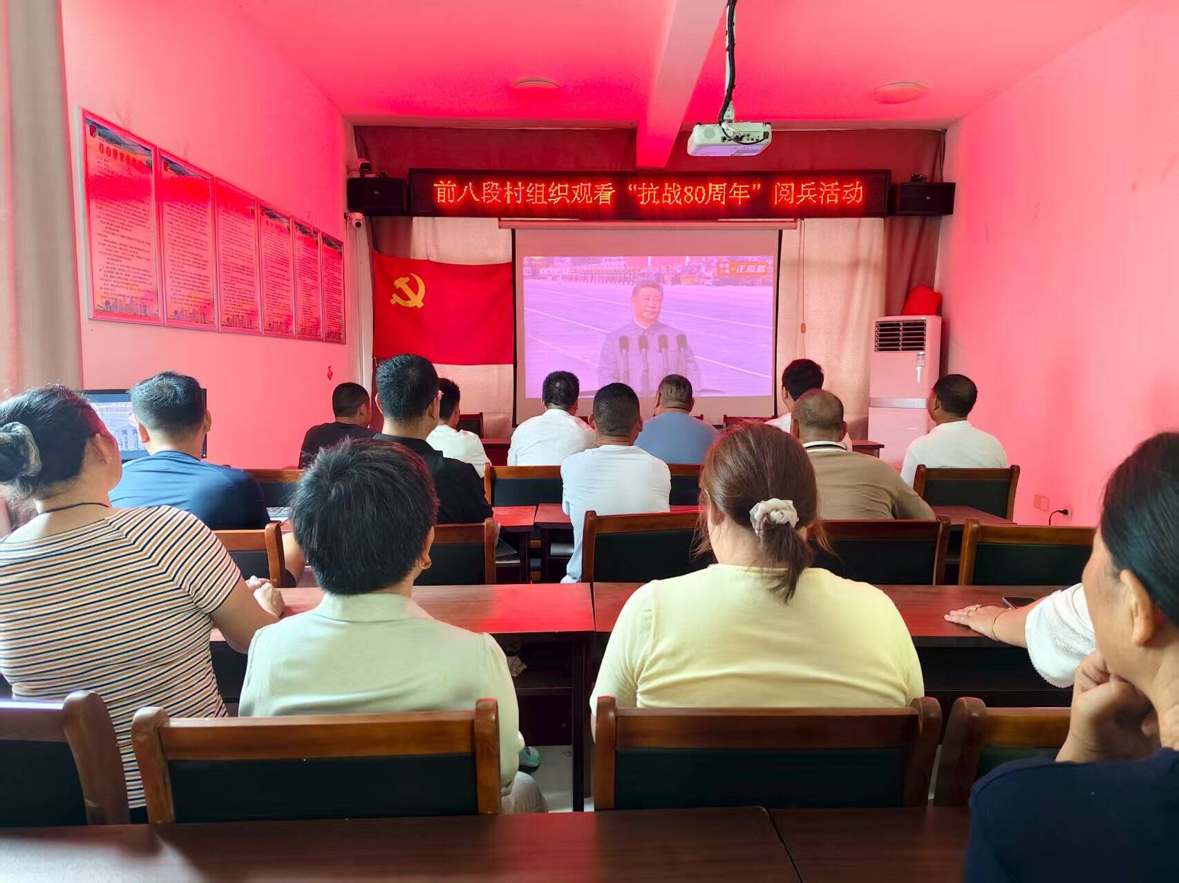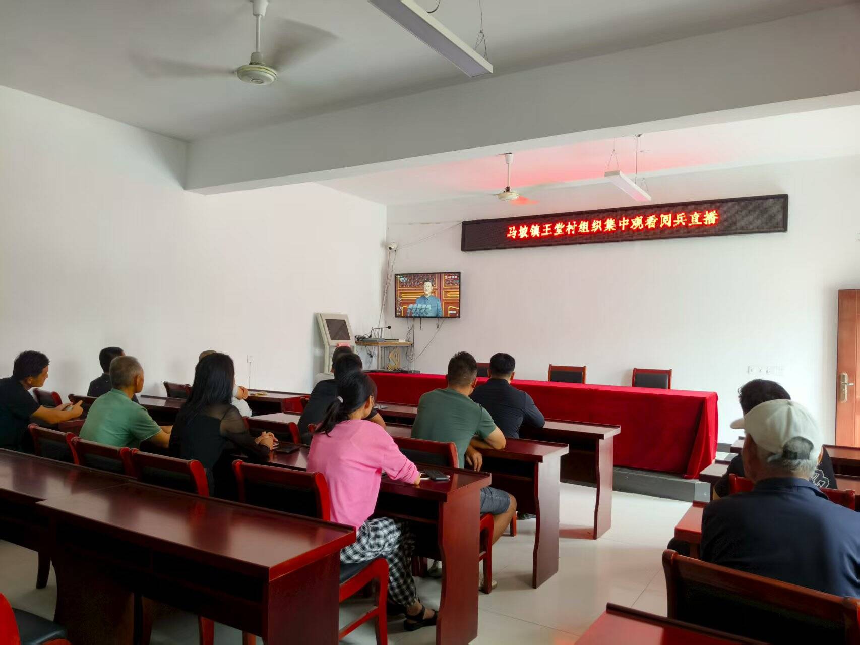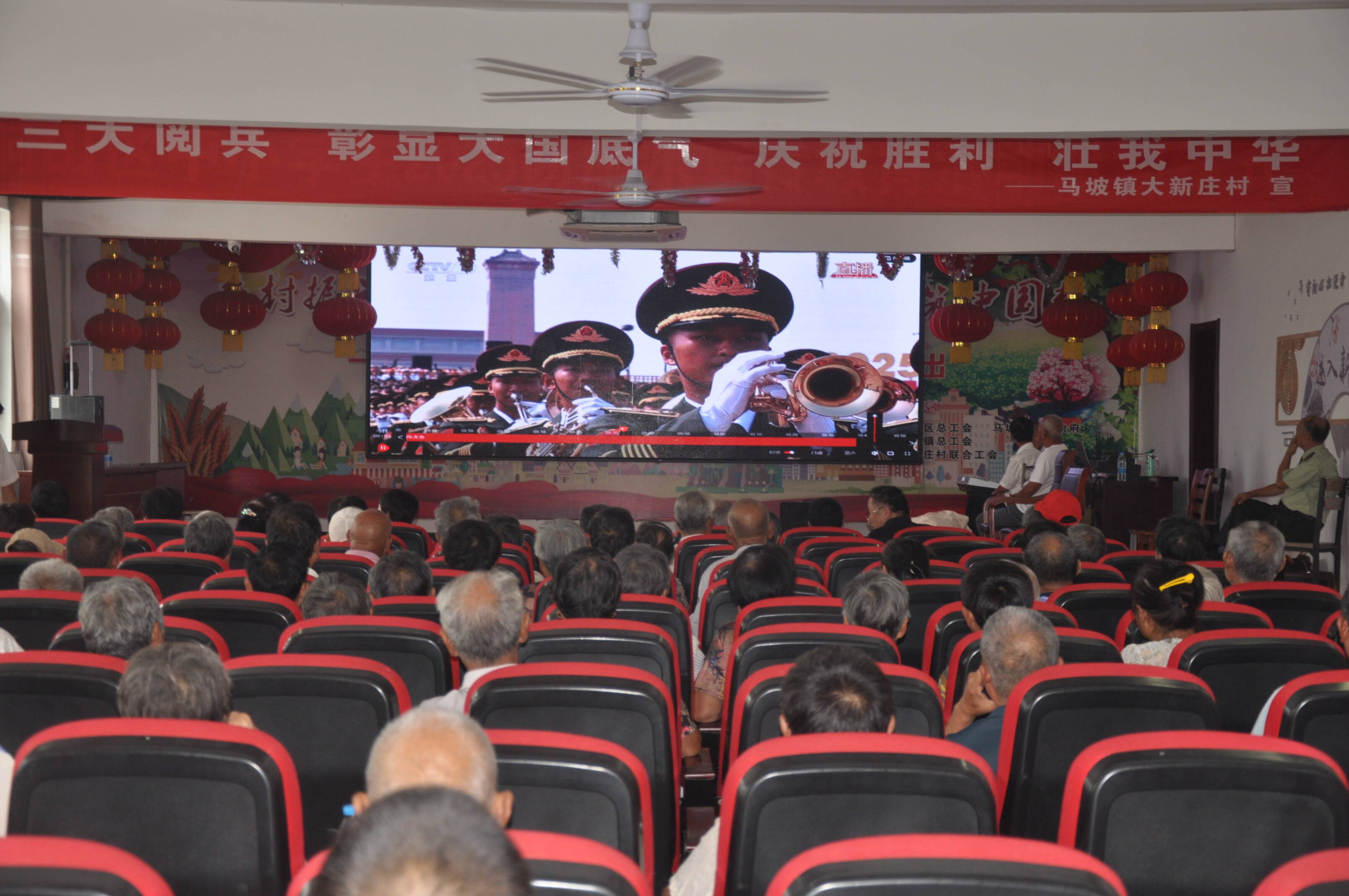 9月3日,纪念中国人民抗日战争暨世界反法西斯战争胜利80周年大会在北京天安门广场隆重举行,中共中央总书记、国家主席、中央军委主席习近平发表重要讲话并检阅受阅部队。马坡镇各村集中观看纪念大会实况直播,共同见证这一庄严时刻。