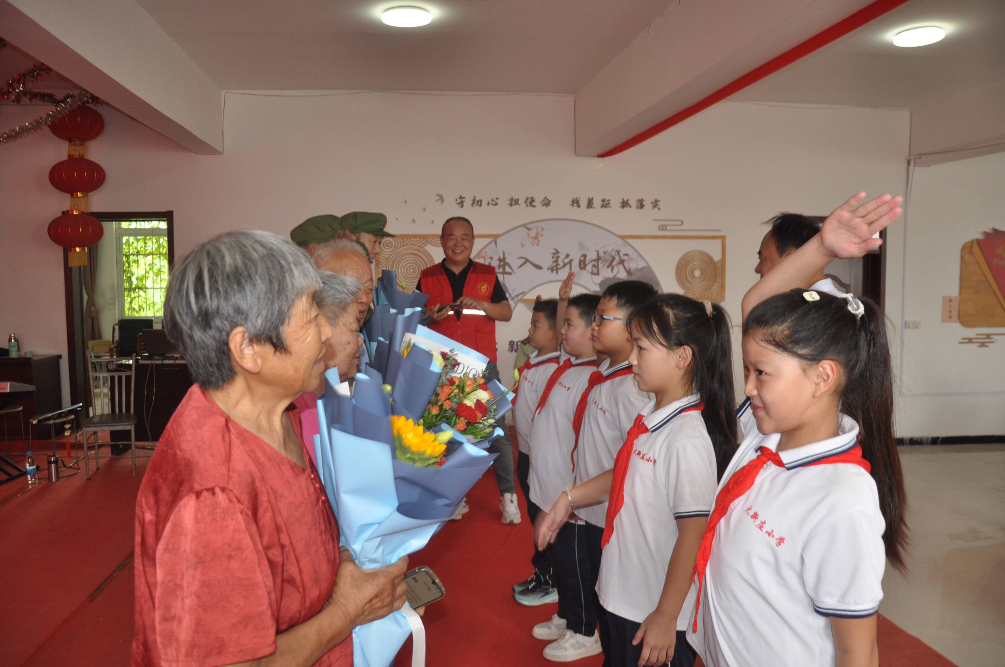 合唱结束后,少先队员们手捧鲜花,走向在场的老兵和烈属代表,向他们行队礼并献上鲜花,表达对革命先烈和抗战英雄的深切缅怀和崇高敬意。