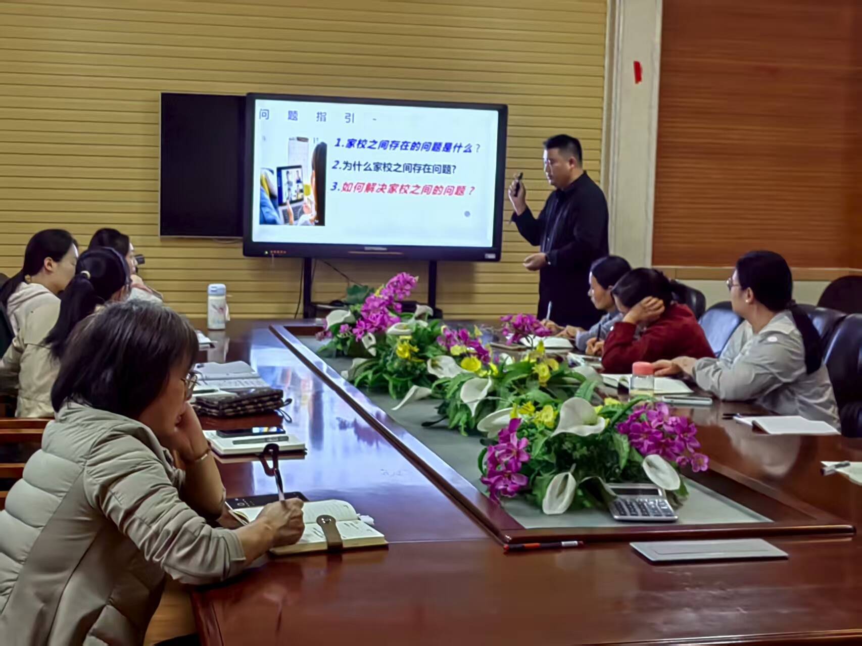 活动的另一大亮点是一场以“家校之间存在的问题”为核心的专题讨论引发热烈反响。大彭中学赵西群主任引导与会教师深入思考。参会者或认真记录,或凝神聆听,围绕家校沟通中的信任建立、信息对称、教育理念差异等现实问题展开交流。通过“具体问题驱动阅读”“深层次思考培养高阶思维”“实践内化行为规范”三大路径,引导教师将阅读转化为教学改进的动力。