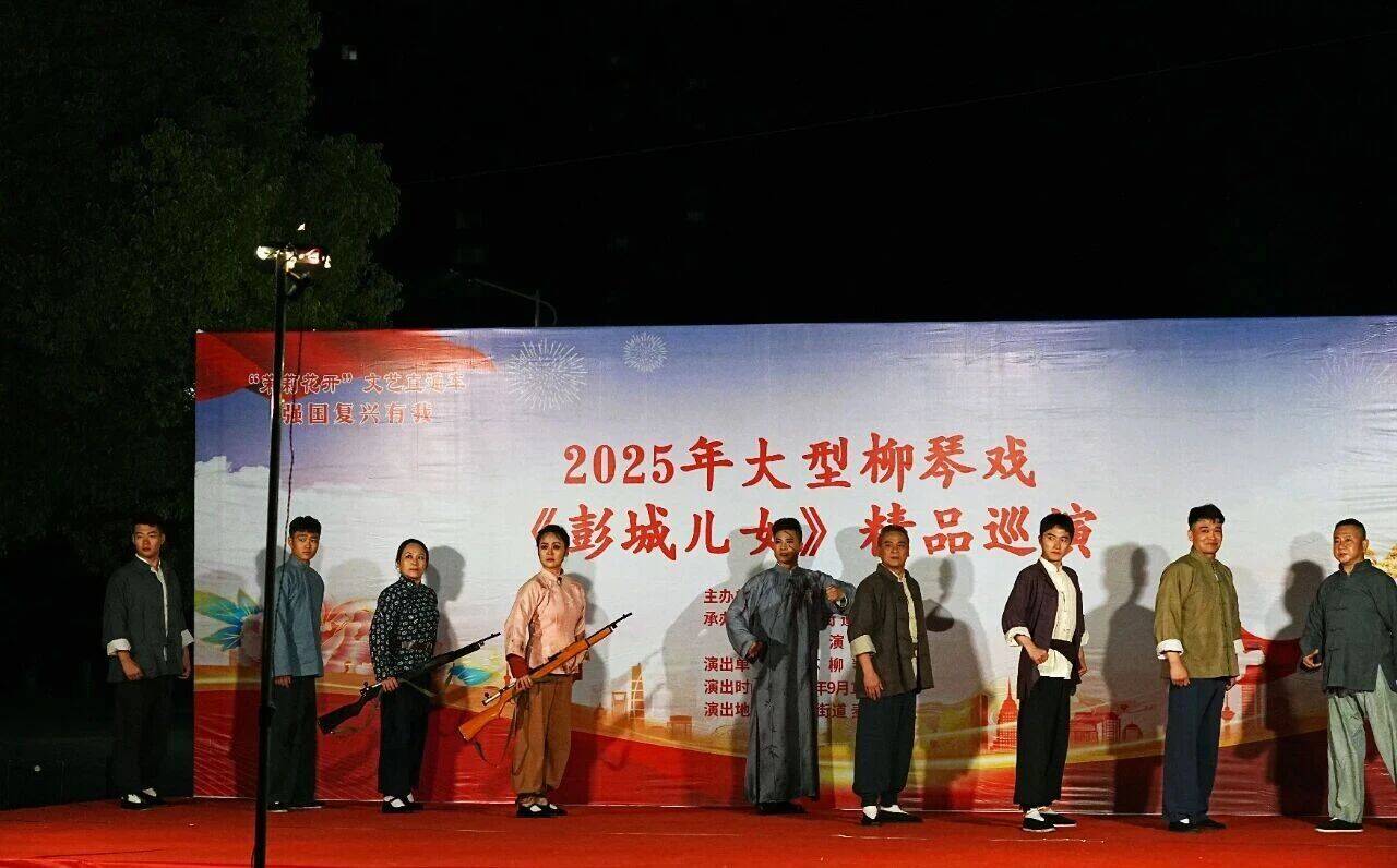 活动现场座无虚席,不少居民早早搬来小板凳等候。随着锣鼓声响起,演员们身着精致戏服登场,以饱满的热情、精湛的演技,将《彭城儿女》中跌宕起伏的剧情和鲜明的人物形象展现得淋漓尽致。剧中展现的家国情怀与地方特色,深深打动了在场观众,现场掌声、喝彩声此起彼伏。