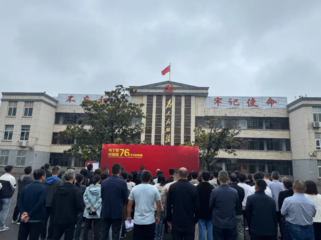 活动在庄严雄壮的国歌声中拉开序幕,《义勇军进行曲》激昂的旋律响彻全场,全体人员肃立,以饱满的热情唱响对祖国的深情祝福。随后,全体党员庄严重温入党誓词,铿锵有力的誓言,彰显坚定不移的理想信念。