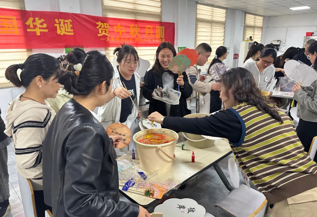 此外,为欢庆中秋佳节的到来,总工会还精心组织了一场充满创意与趣味的漆扇制作活动。活动现场,大家尽情发挥想象力,将五彩缤纷的颜料巧妙地滴染在水面上,通过“沉扇微起”或“婉转拂手”,瞬间便在扇面上印制出美丽的图案,以此表达对祖国母亲的热爱以及对中秋佳节美好生活的无限憧憬,活动现场洋溢着欢声笑语,其乐融融。在这双节相遇的美好时刻,月满中秋打卡墙引来围观,大家将思念化作祝福,共同祈愿祖国繁荣昌盛!