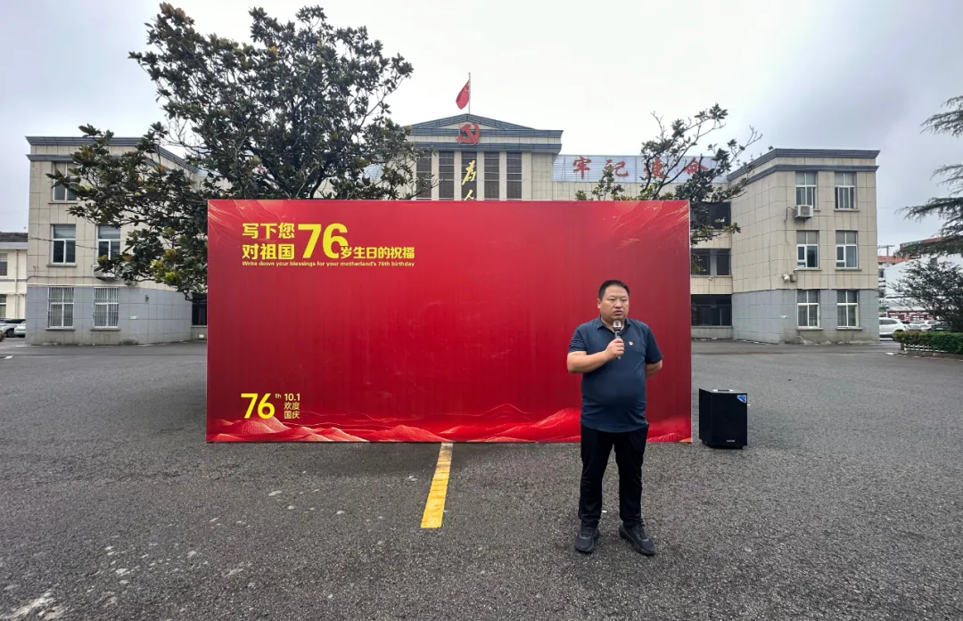 大彭镇党委副书记、镇长卞通在国旗下发表讲话。他回顾了新中国成立76年来的辉煌成就,并重点讲述了大彭镇在区委、区政府的坚强领导下取得的显著进步,卞通向秉持“舍小家为大家”奉献精神的全体职工表达了衷心的感谢。展望未来,他殷切期望全体党员干部和广大职工能够成为创新突破的“排头兵”,努力奋进,砥砺前行,为大彭的高质量发展贡献磅礴力量,同时,也希望大家在节日期间能够放松身心,感受集体的温暖,并将这份感动与力量转化为继续前行的不竭动力,衷心祝愿祖国繁荣昌盛,大彭的明天更加辉煌!