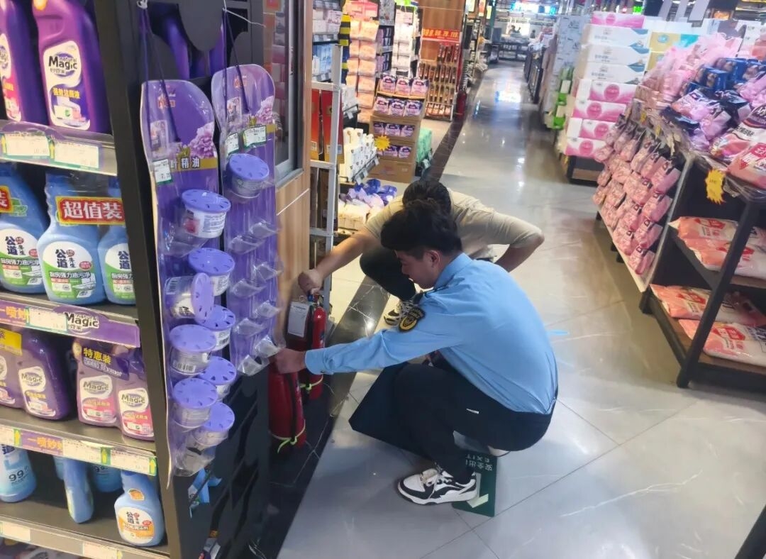 为切实保障人民群众度过一个平安祥和的“双节”假期,9月30日,大彭镇商务办联合镇综合行政执法和安全生产监管办公室,深入镇区金桥超市、易特购超市及农贸市场,开展细致周密的消防安全专项检查。