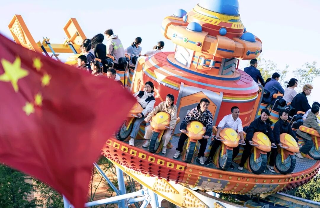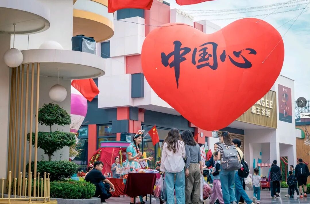“十一”假期的方特乐园始终人流如织,洋溢着浓浓的节日气氛,这里用“中国红”打造出第一波视觉潮流。红旗漫卷,非遗墙面换新颜,巨型“中国心”气模成为热门打卡点,游客在“盛世画卷”集章中触摸历史,在明月夜下共话团圆——在这里,“潮”不仅是色彩,更是情感的表达。