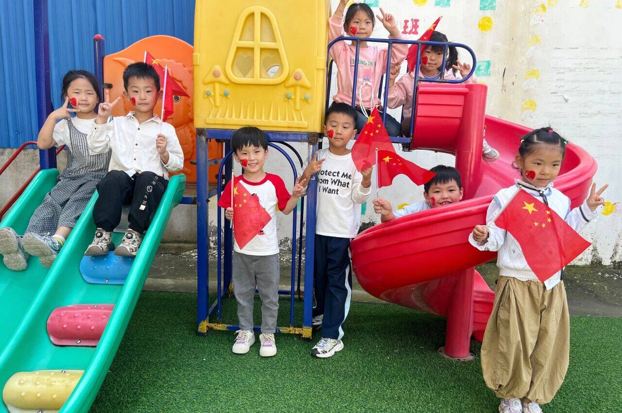 九段村志愿者为小朋友们细致讲解国旗的设计意义——红色象征革命、五颗星代表人民大团结。志愿者们将国旗背后的故事与爱国精神娓娓道来,在孩子们心中播下爱国的种子,让国庆的喜悦与奋进的力量悄然生根。