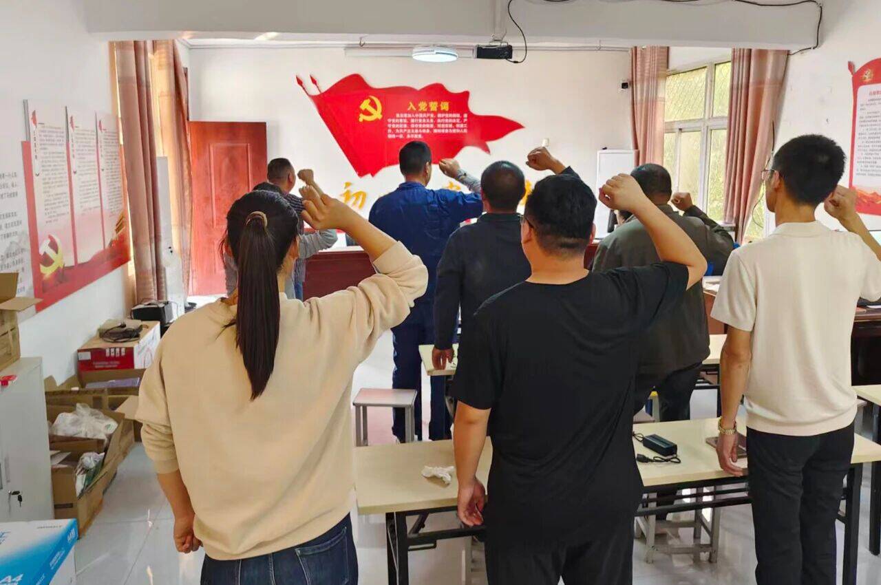 “我志愿加入中国共产党……随时准备为党和人民牺牲一切,永不叛党。”在和畅庄村,党员干部们高举右拳、庄严宣誓。铿锵誓言响彻现场,不仅是对初心使命的重温,更彰显了大家对党的无限忠诚,以及践行“为人民服务”宗旨的坚定信念。