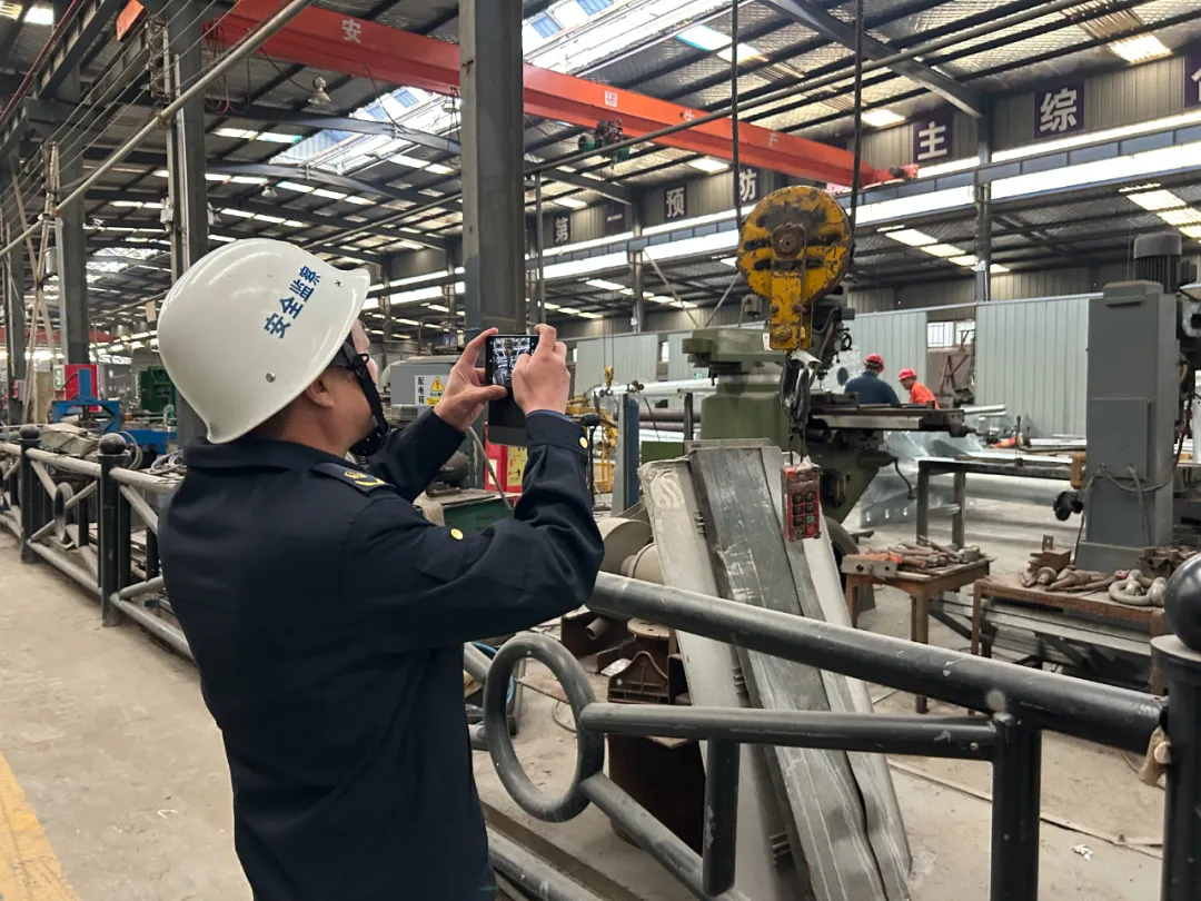 检查组先后来到徐州亿通交通设施有限公司、徐州千诚毅包装材料有限公司、徐州华涛钢结构工程有限公司等企业,对生产车间、喷塑区域、配电室、危险化学品库等重点区域进行全面细致的安全检查,对于排查出的配电室线槽坑未设置防护措施、喷塑房使用易燃可燃物、设备滚动部位无防护罩等隐患问题,当场下达限期整改通知书,明确整改要求和整改期限,跟踪督促企业整改落实,确保隐患整改“闭环”管理。