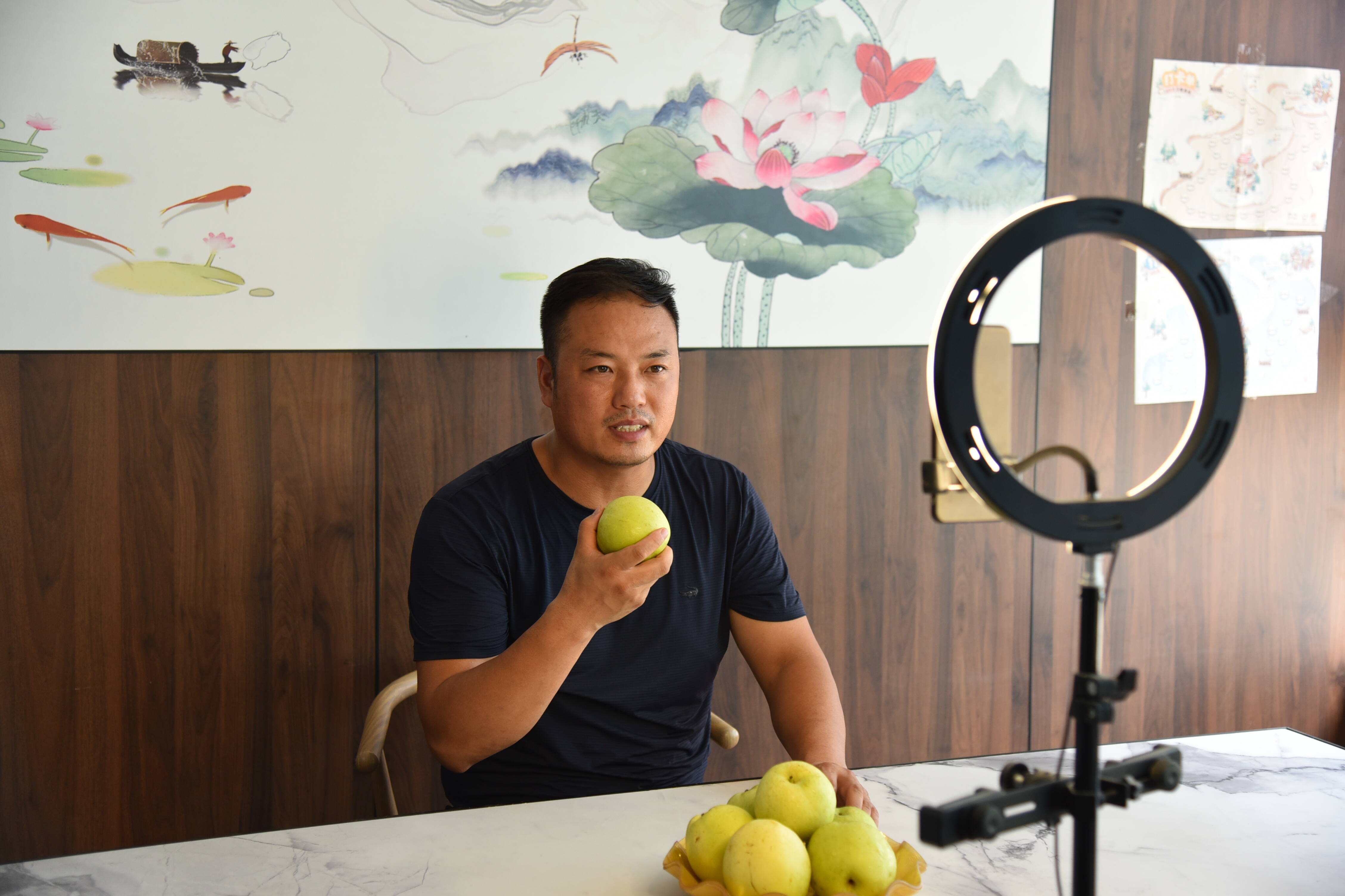 “今年,秋月梨长势很好,甜度在14个以上,均价2.6元每斤,一亩地收入超万元。”随手摘下一个梨张强与记者交流着。“销售怎么样?”“国庆、中秋节临近,每天销售20000斤左右。”徐州市宫品果品合作社负责人张强边走边说。