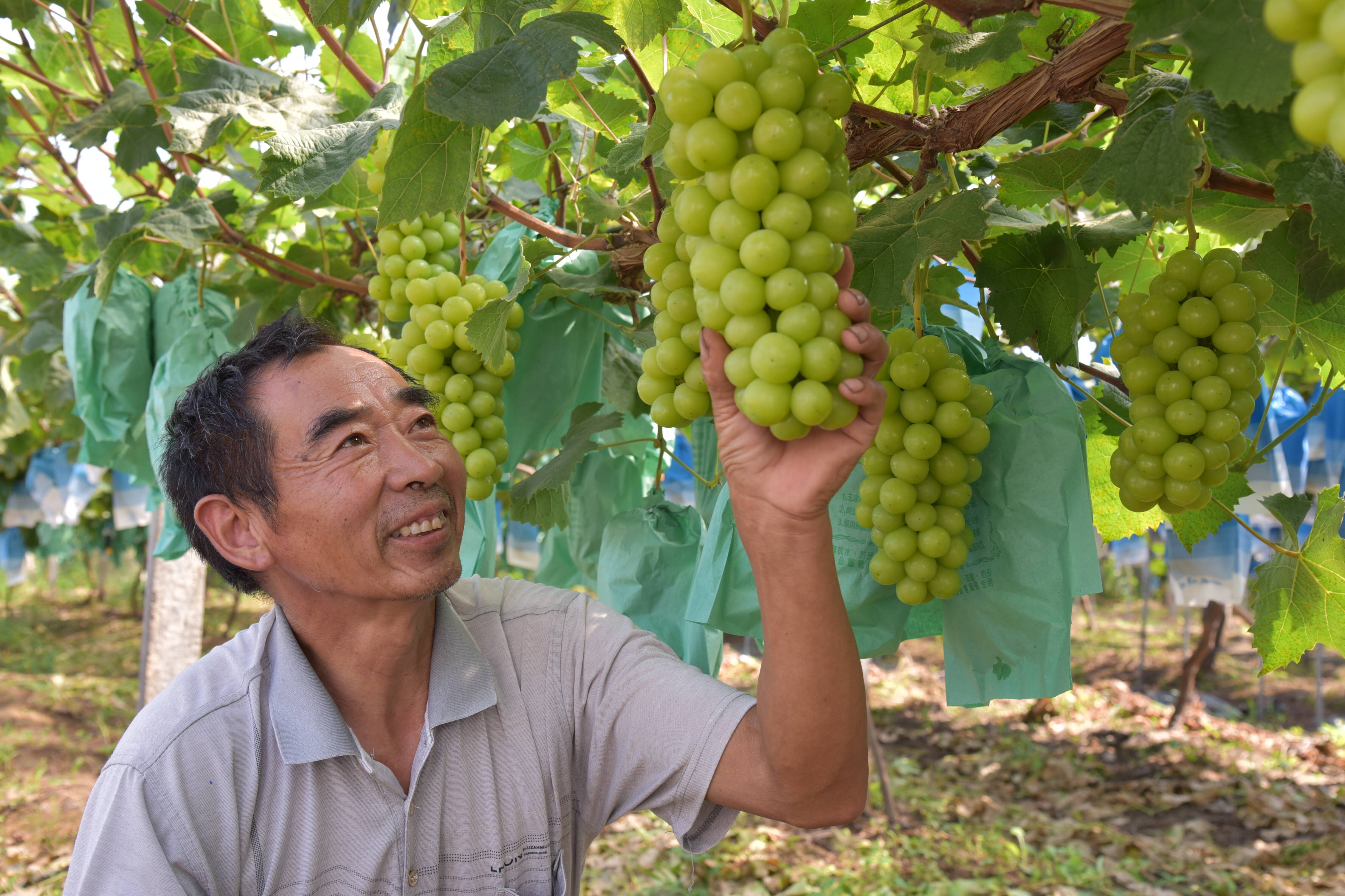 “ 我的葡萄园肥料全部用的是羊粪,不用尿素和复合肥,虽然结的果个头不算大,但含糖量高、香味浓、颜色好,吃了都说好。”郝兴华说,在种植中他采用水肥一体化、施用农家肥、生物防治等技术,产出了优质的葡萄。为错峰销售,基地不仅种植了阳光玫瑰还有夏黑、巨峰等10多个品种的葡萄,经过精心培育,萄品质上乘,销售价格是同品种价格的2倍,并供不应求。