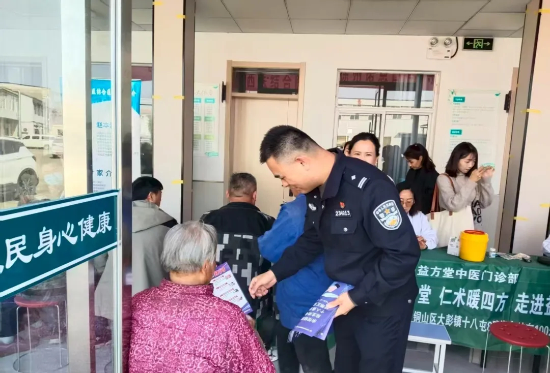 金菊吐蕊迎重阳,孝老情浓暖深秋。10月29日,正值重阳佳节,大彭镇文体站、综治办、派出所联合铜山益方堂中医门诊开展“重阳理发添福寿,反诈防骗守安康”主题公益活动,通过“爱心义剪+反诈宣传+健康守护”的暖心组合,为辖区老年人送上了一份别具意义的节日关怀。