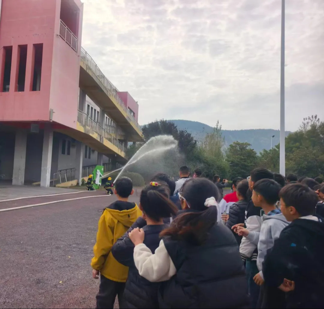 随后的实操环节将活动推向高潮。消防员现场演示干粉灭火器“提、拔、握、压”操作要领,学生们在专业指导下踊跃参与“灭火”行动。八年级学生王同学体验后表示:“亲手操作才发现,使用灭火器并不难,关键是掌握要领并克服紧张情绪。”这种“看得到、摸得着、学得会”的沉浸式体验,让抽象的消防安全知识变成了具体的实战经验。