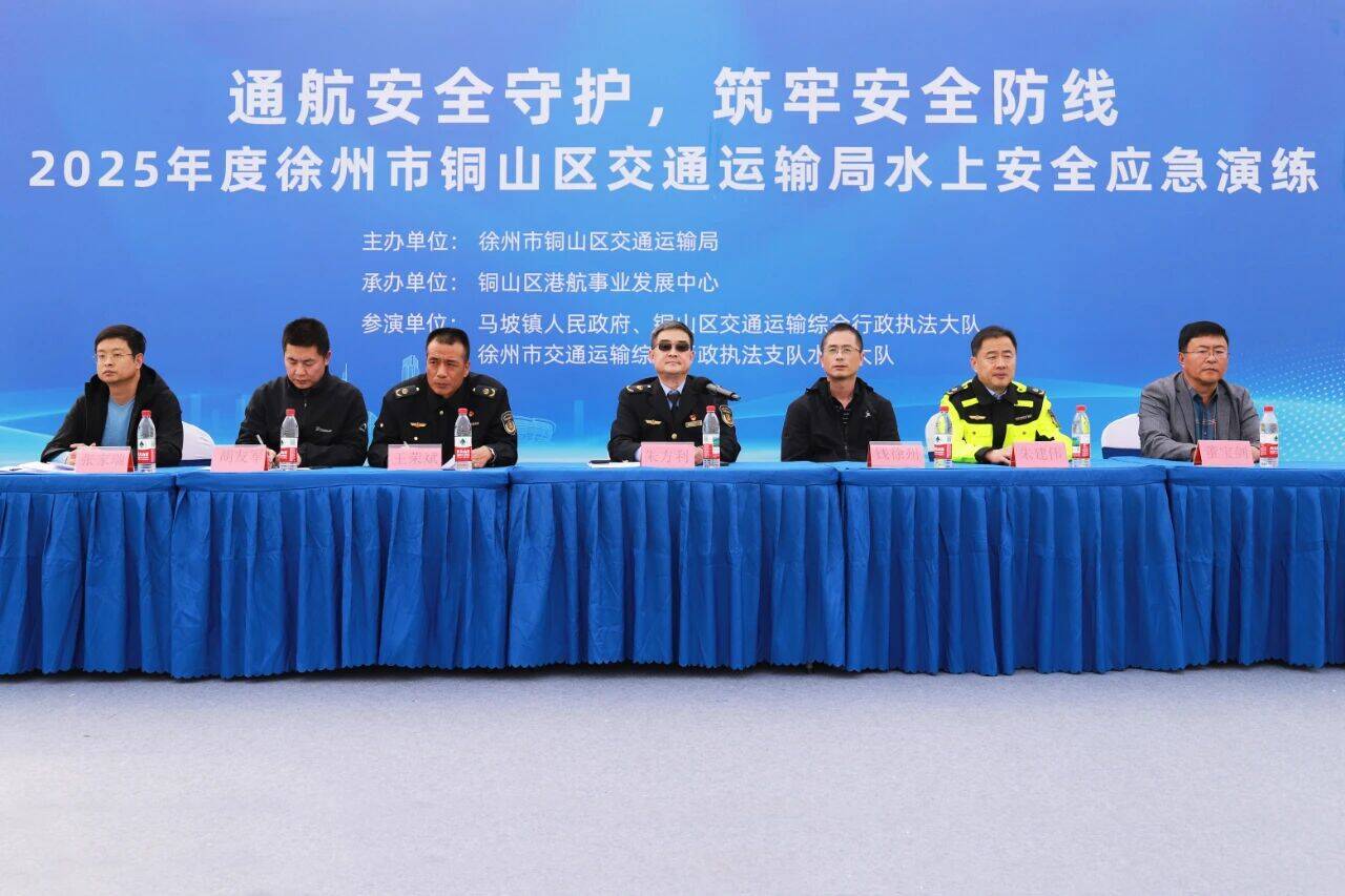 原来,这是由铜山区交通运输局主办、铜山区港航事业发展中心承办的2025年度水上安全应急演练中的一幕。本次演练整合交通执法、航务、猎鹰救援队、卫生急救等多方力量,调度巡逻艇、无人机、冲锋舟等装备参演,实现多单位、多科目联动协作。铜山区交通运输局副局长朱方利出席活动并讲话,马坡镇党委委员、人武部长钱徐州共同参与。