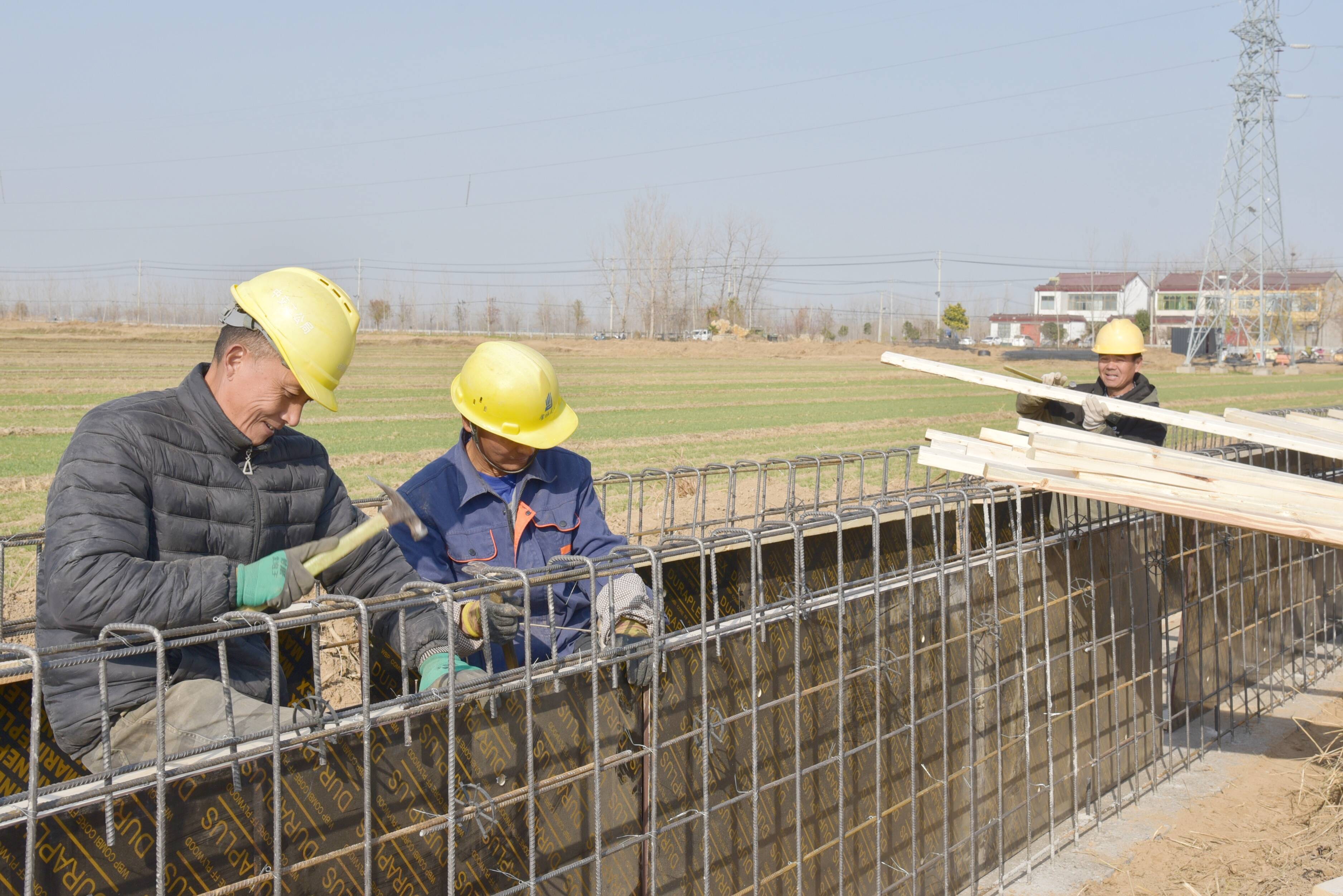 近日,在徐州市铜山区房村镇尚王村,施工人员抢抓晴好天气修建农田灌溉水渠,田间地头一派忙碌景象。