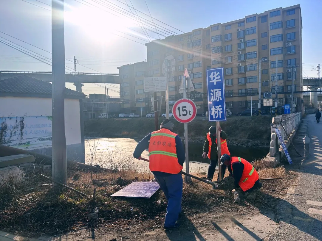 1月8日上午,工作人员来到大刘村,为华源桥更换了新的桥牌,此次更换的新桥牌选用了更加坚固耐用的材料,能够有效抵御各种恶劣环境的考验,新桥牌上清晰标注了桥梁名称,并同步设置了醒目的限载牌,字体清晰、标识明确,便于过往人员快速识别,确保通行安全。