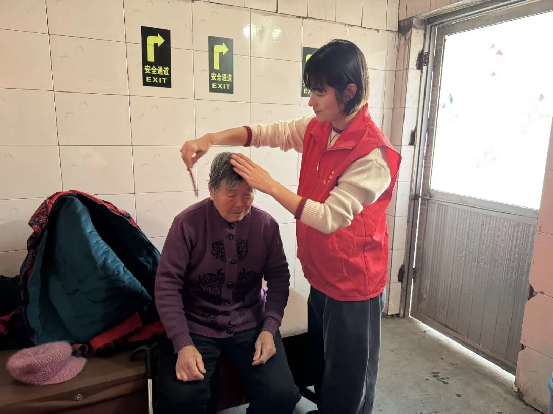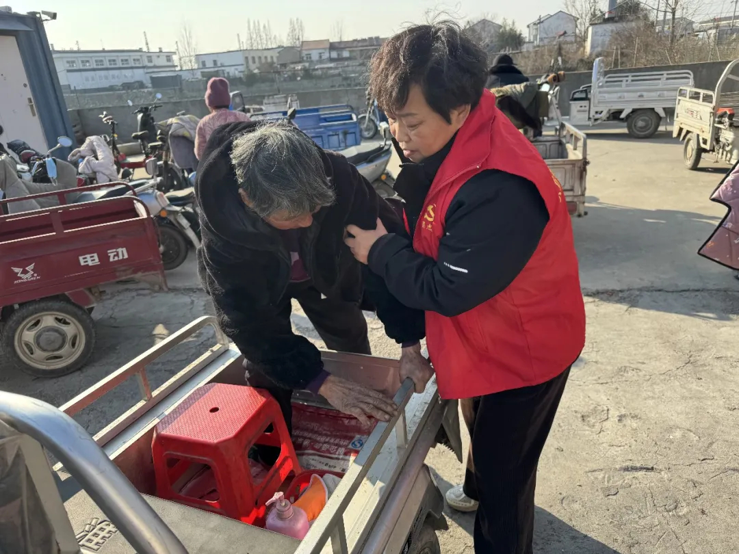 了解情况后,经集体商议,大家决定用三轮车将老人们接到村外澡堂洗澡。志愿者提前备好干净衣物、毛巾、肥皂、板凳等物品,随后小心搀扶老人上车,平稳地将她们送至澡堂。帮老人洗完澡后,志愿者又帮老人把头发梳理整齐,最后将她们平安送回家中。