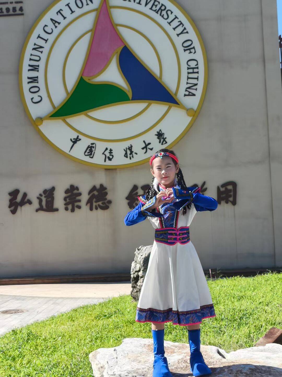 传媒大学的教学楼好高啊!门口的大石头上面刻着金光闪闪的字。走廊里挂着好多电视屏幕,正在播放哥哥姐姐们播新闻的画面。我踮起脚尖看得入神,差点撞到一位戴眼镜的教授。