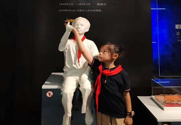 出口处有台发糖的机器,我得到一颗亮晶晶的苹果糖。剥糖纸时,突然想起展柜里那颗小小的、化了一半的糖——那是小萝卜头舍不得吃完的生日礼物。 我把苹果糖掰成两半,一半塞进嘴里,一半包好放进口袋。甜味在舌尖跳舞时,我对着纪念馆大门小声说:“小萝卜头,今天的糖,我替你尝啦!”