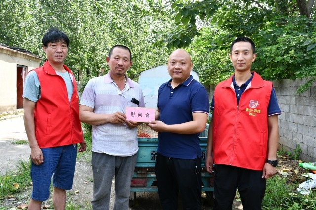 接着,慰问组一行来到班山村张成家里,悉心询问他的身体情况,了解到张成患直肠癌,儿子收入不高,双胞胎孙女耳朵失聪,一家人生活困难,便叮嘱他照顾好身体,并为他送上了1000元慰问金,希望他们一家克服困难过上幸福生活。