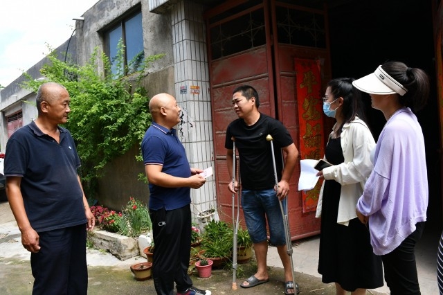 慰问组一行来到茅村村退伍军人王健家里。王健双腿股骨头坏死,妻子马优美膜性肾病,一子一女都在上中学,是茅村村低保户,慰问组把1000元慰问金交到王健手里,鼓励他保持乐观心态,积极与病魔作斗争,争取早日康复。