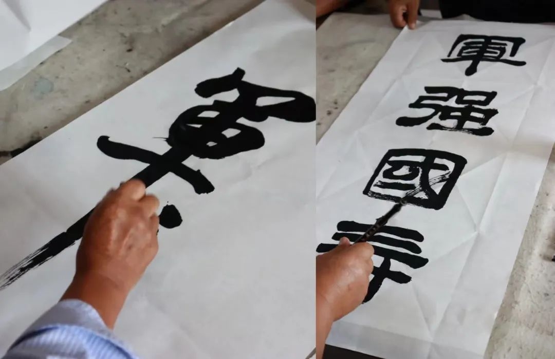 活动现场,大许镇书画协会成员们围绕军营题材展卷提笔、挥毫泼墨,用胸中豪气书写出“军魂”“自强不息”“气吞山河”等一幅幅书画作品,笔力遒劲、气势雄浑。
