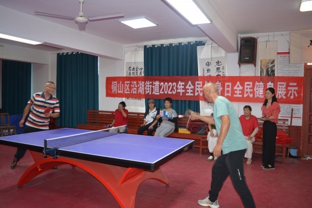 沿湖街道文体站、工会、关工委、学校、民政办、新时代文明实践所等部门联合,组织开展全民健身展示活动。