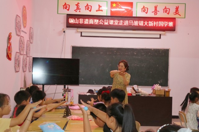 “请伸出小手,牢记‘一搓、二捏、三揉、四滚、五压’技法口诀,施展‘魔法’,将桌上五彩面团变成你最喜爱的动物”。近日,马坡镇邀请铜山区非物质文化遗产“面塑”项目传承人裴洪艳来到马坡镇大新庄村国学班,教授孩子面塑技艺,感受非遗文化的魅力。