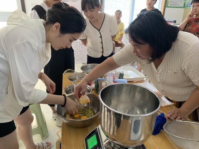 志愿者将事先准备好的制作巧果的面团和工具分发给大家,一边制作一边讲解步骤要领:“做巧果讲究技巧和火候,和面要软硬适中,做之前要把面醒好,烤箱需要预热。”揉面、切块、放入模具……大家很快掌握了要领,不一会儿“金鱼”“飞燕”等一盘盘巧果出锅了,色泽金黄,香味扑鼻,大家品尝着自己做的巧果,活动现场充满了欢声笑语。