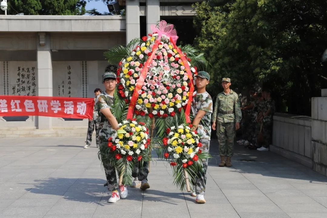 当天上午,茅村中学2023级高一新生来到徐州市淮海战役纪念馆,学生们排着整齐的队伍在淮海战役烈士纪念塔前列队站好,进行瞻仰和纪念活动。