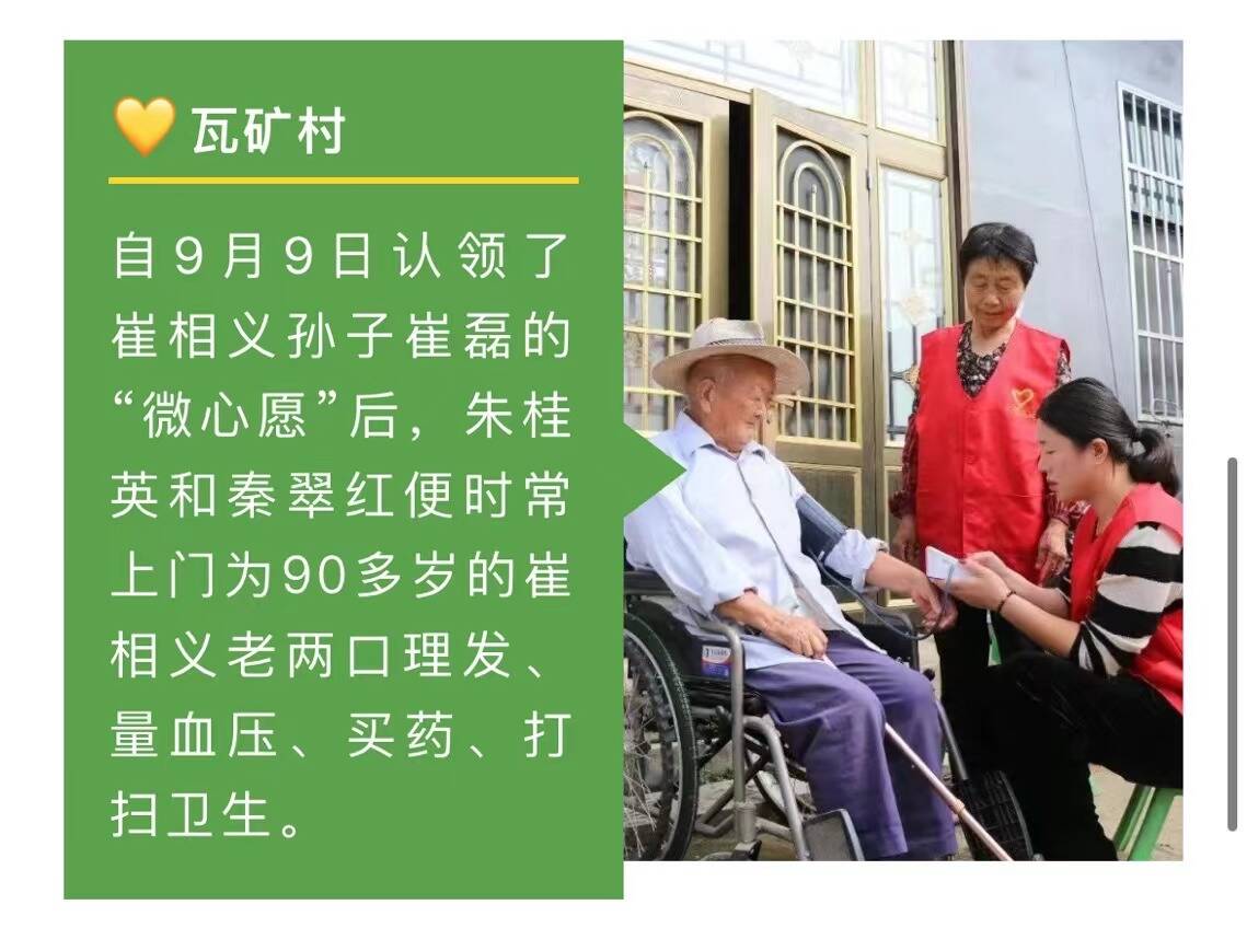 ➤ 截至目前,马坡镇通过线上“微心愿点单”,线下“微心愿墙”平台共收集微心愿80个,完成修电、伴读、打扫卫生、理发等服务64次,经历“圆梦时刻”的村民有55人,通过朋友圈晒出的志愿服务项目有25个。