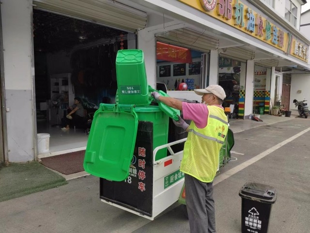 目前,共发放垃圾桶14330组,分别由29辆分类垃圾转运车对6个社区(村)各类垃圾进行及时清运,从源头上全面规范垃圾分类工作。